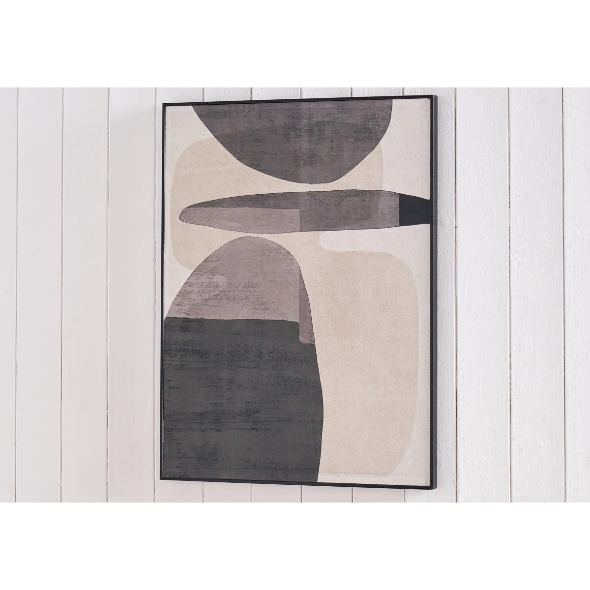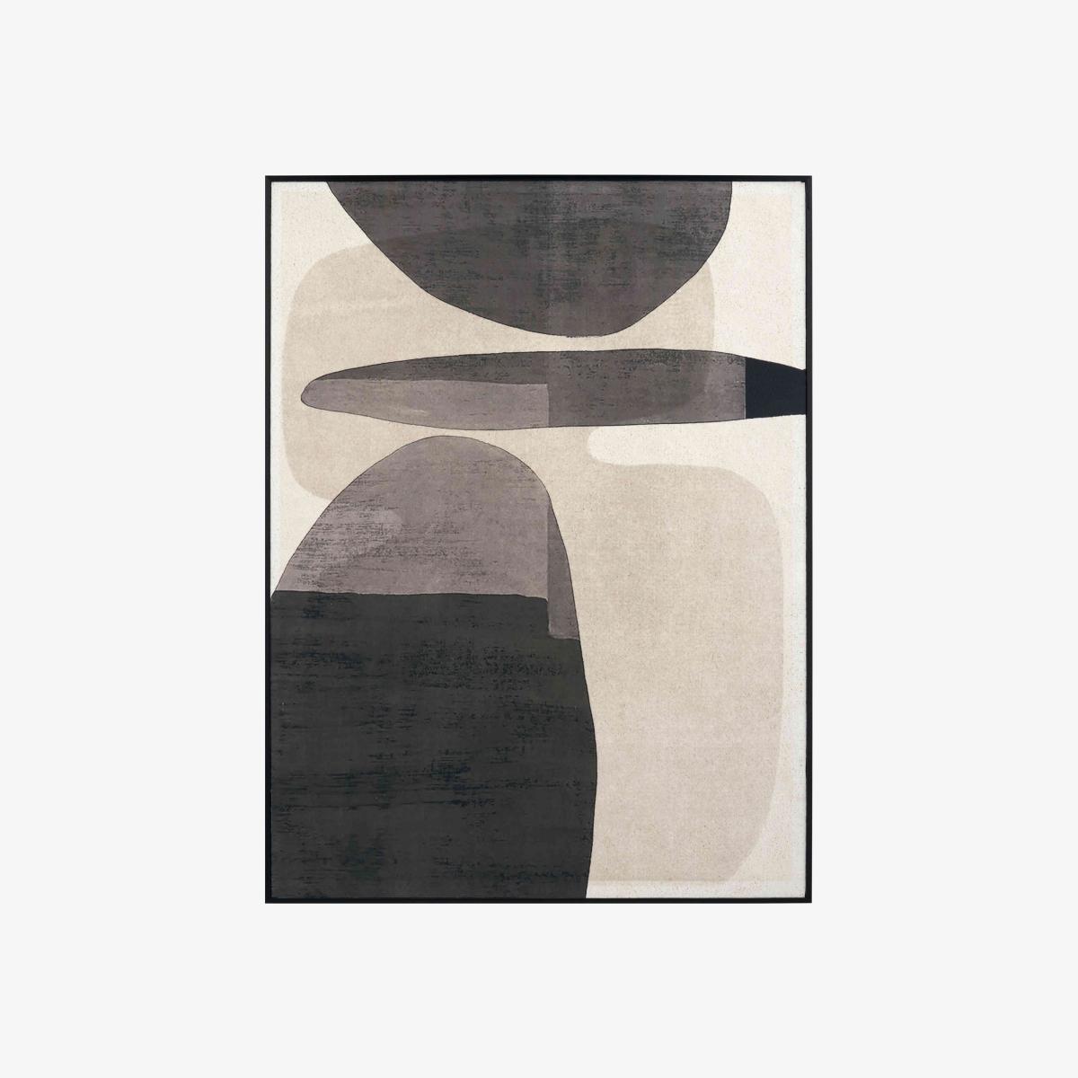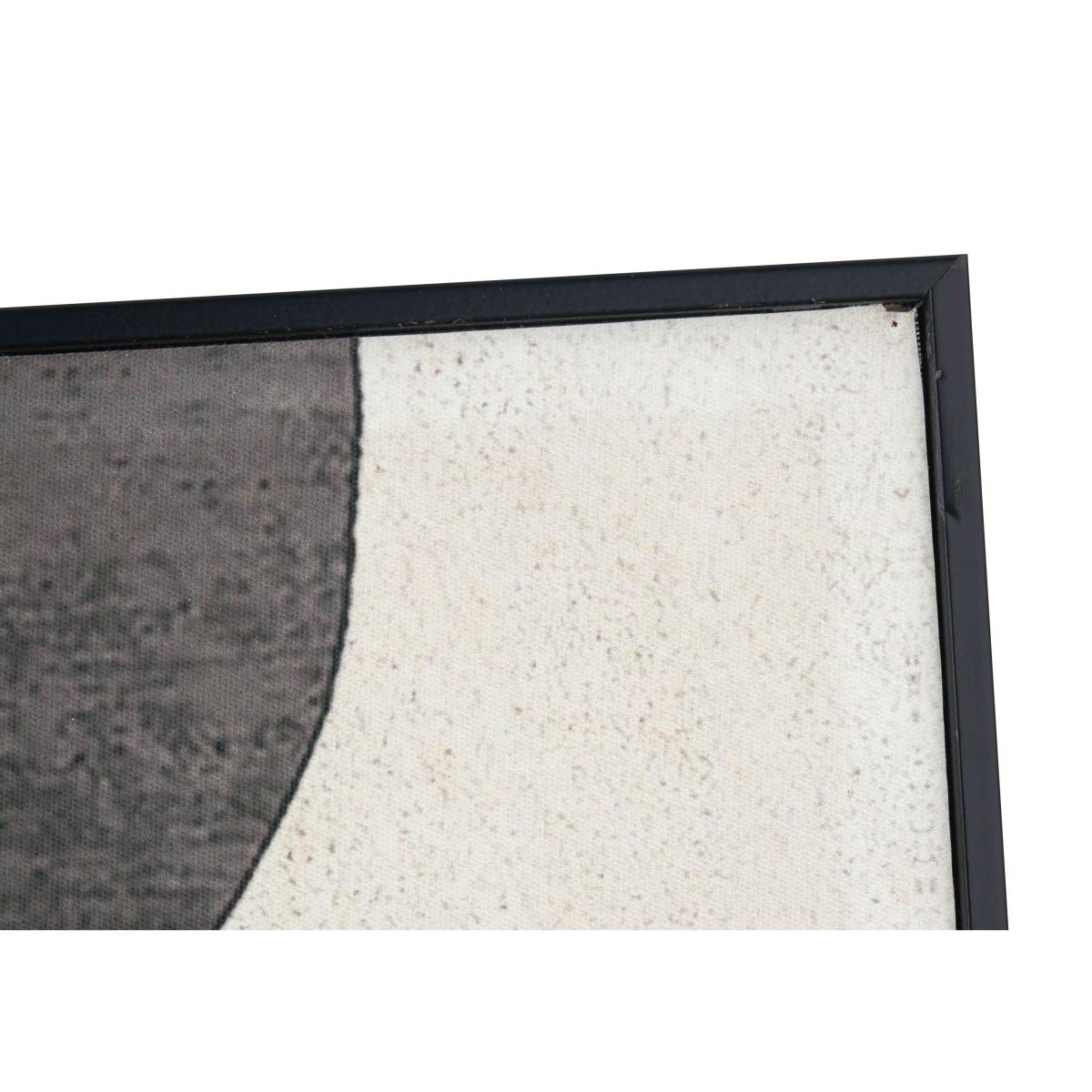 With a simple yet striking contemporary design, this understated framed canvas print is an easy way to add interest to a space. Why you'll love it Finished in a versatile neutral monochrome palette. Gentle overlapping oval pattern softens your space. Framed in black wood veneer for a bold border. What you need to know Supplied with a metal hanging fitting and nylon cord. Indoor use only. Dimensions Width: 60 cm (24 inches) Height: 80 cm (32 inches) Depth: 3 cm (2 inches) Weight: 2.1 kg