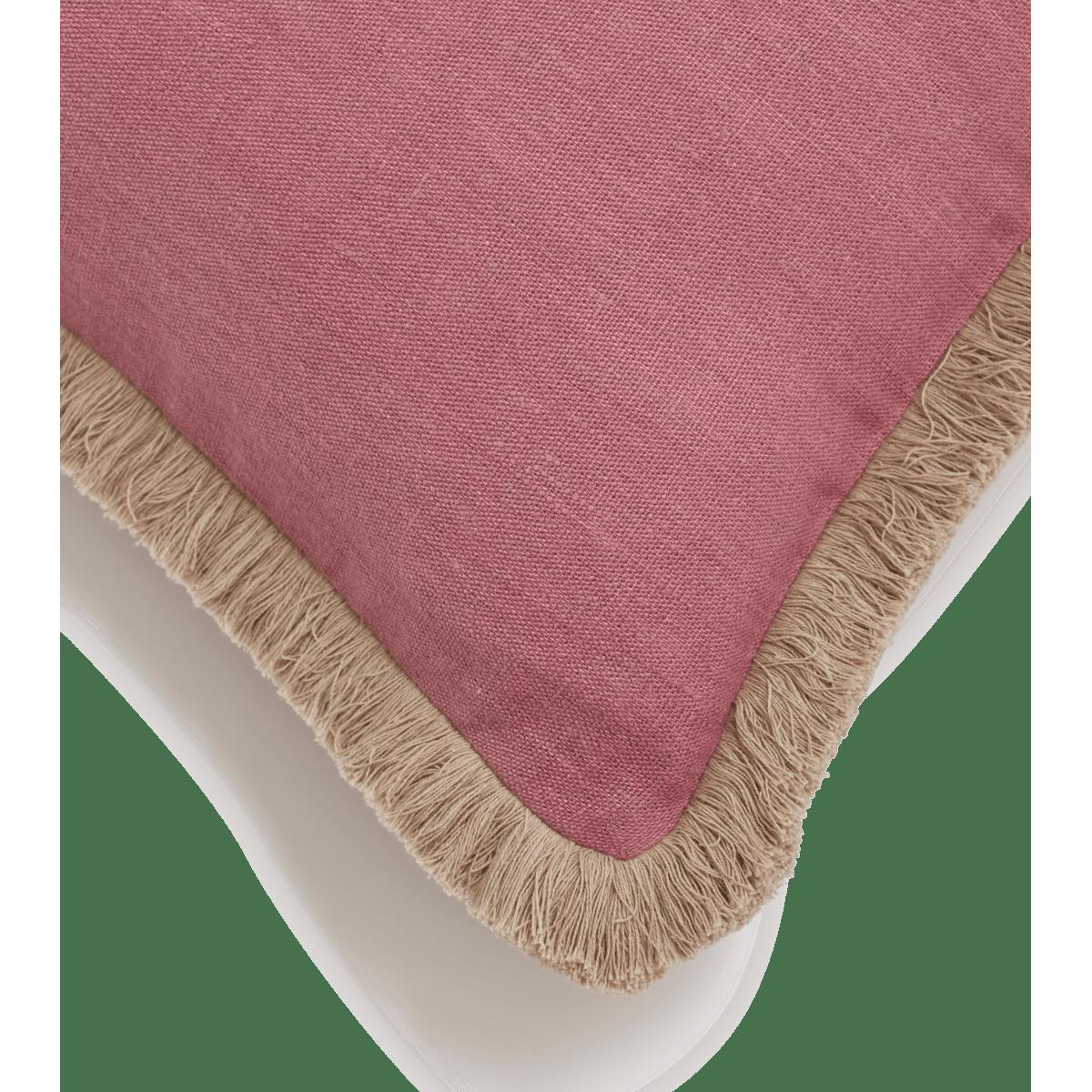 With its delicate texture, soft fringing gives these linen cushion covers an undeniably tactile appeal. Available in several boudoir-inspired shades, these 100% linen designs add a sumptuous finish to a bedroom or sitting room. This version is a dusky pink hue that will bring subtle warmth to your interiors. Our Lilias Cushion Covers are part of our sustainable approach and efforts to use every inch of fabric that we have; they are crafted from the high-quality linen leftover from our other artisan projects, resulting in less waste.