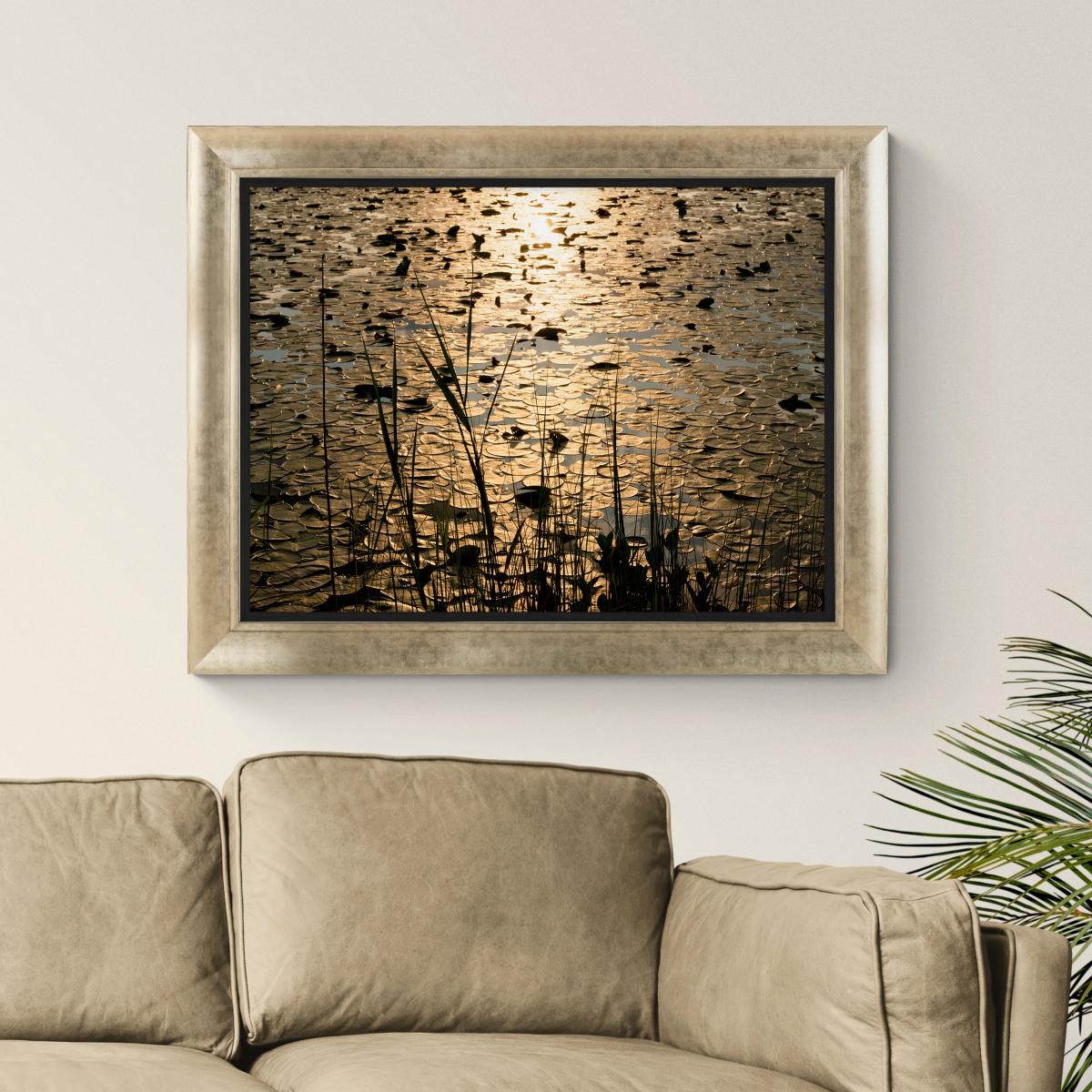 Lilies, a framed print by Mike Shepherd, showcases the captivating beauty of water lilies through photography. Set within a gold-colored frame and featuring a textured finish, this artwork adds a touch of elegance and nature-inspired allure to your home decor.