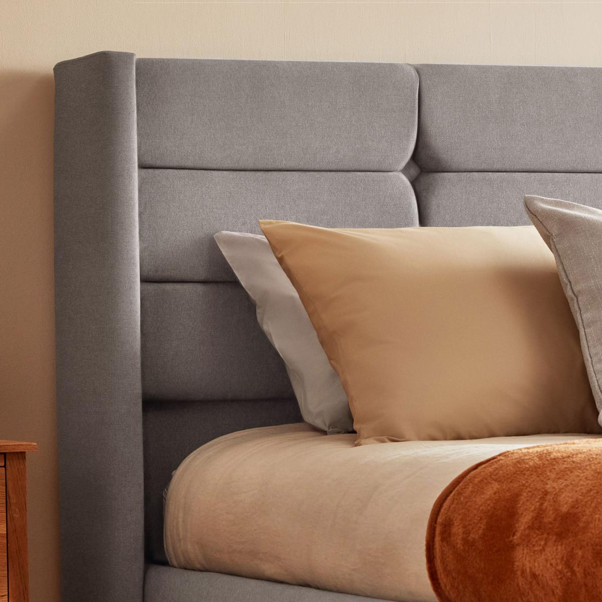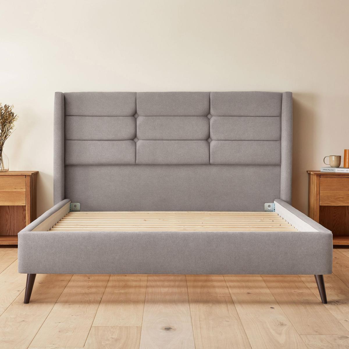 I’m a fan of this light-grey woven bed frame for its clean lines and soft, tactile upholstery - it instantly feels inviting without overpowering the room. It works particularly well in Scandi-inspired or minimalist interiors, but can also soften a more industrial or mid-century scheme thanks to its neutral tone and subtle texture. For styling, pair it with pale wood bedside tables and low-profile lamps to maintain that airy feel. Layer neutral linens and add a single accent cushion in terracotta or deep green for a pop of colour. A thin rug at the foot of the bed keeps things cosy, while wall art in muted shades ties the look together.