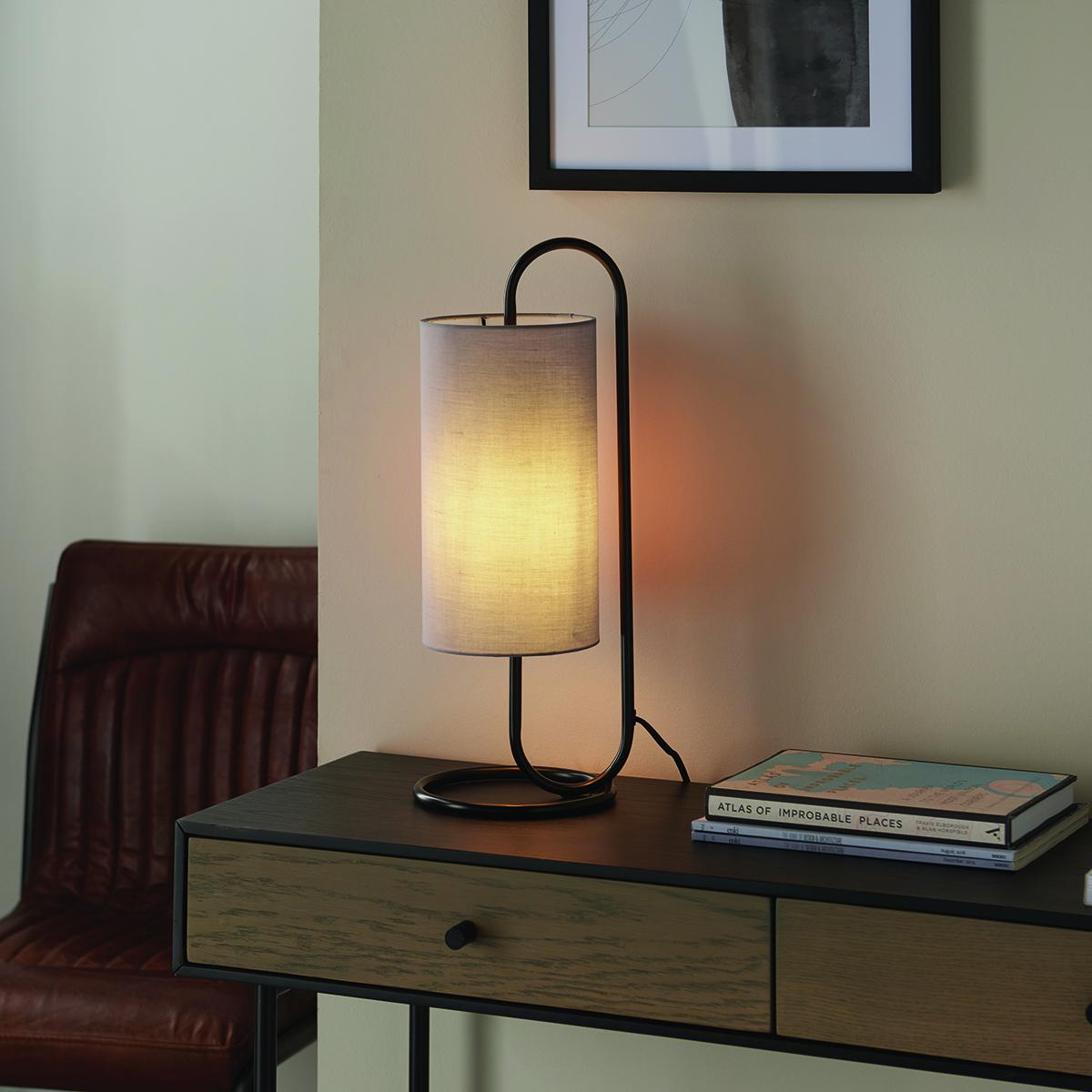 Lilith Table Light in Matt Black with Grey Fabric