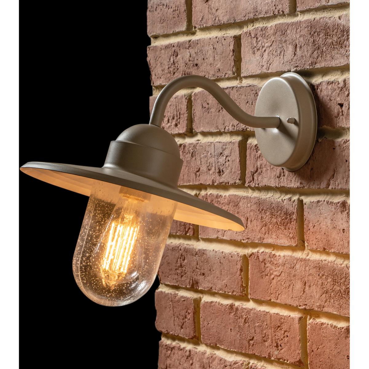 Illuminate your garden with this fisherman's wall lantern finished in taupe metalwork with a clear domed bubble glass to hide the bulb.