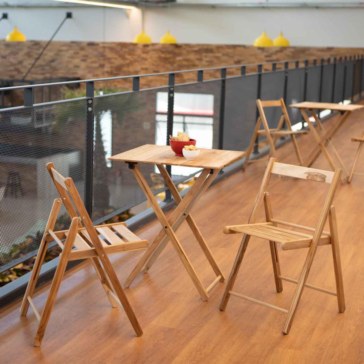 This natural design Lille 2 seater bistro set from Tramontina has been crafted from a strong, durable and resistant teak wood that has a sanded finish for a natural look. As this bistro set is compact and foldable, it is easy to store and move as well as assemble. The wood used is eco-friendly as it certified to Forest Stewardship Council® (FSC) standards.