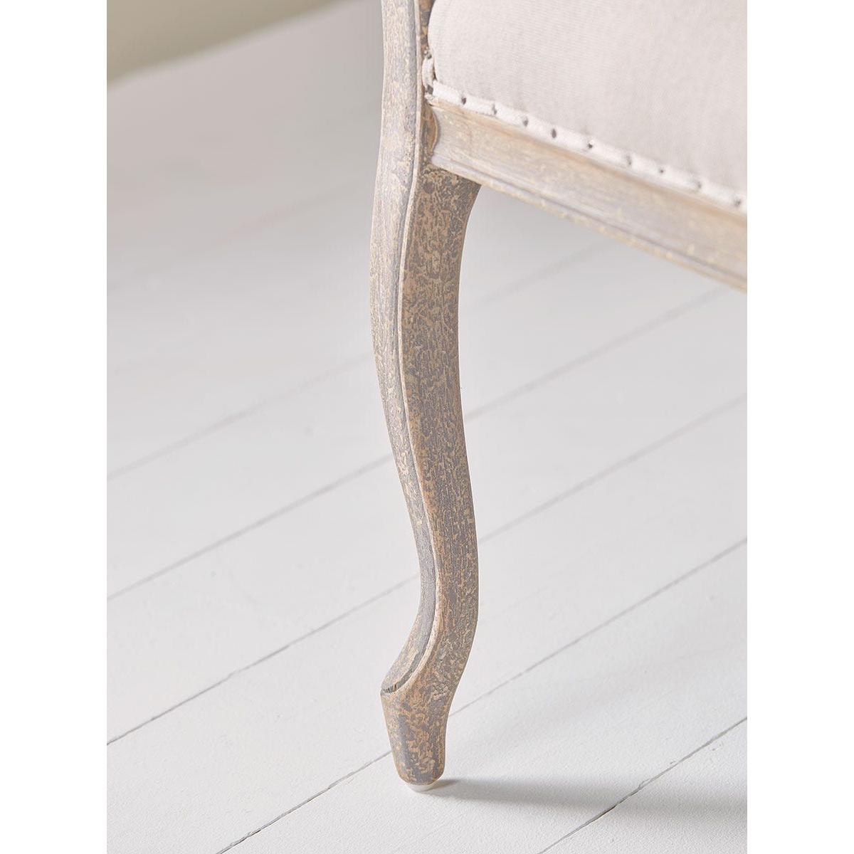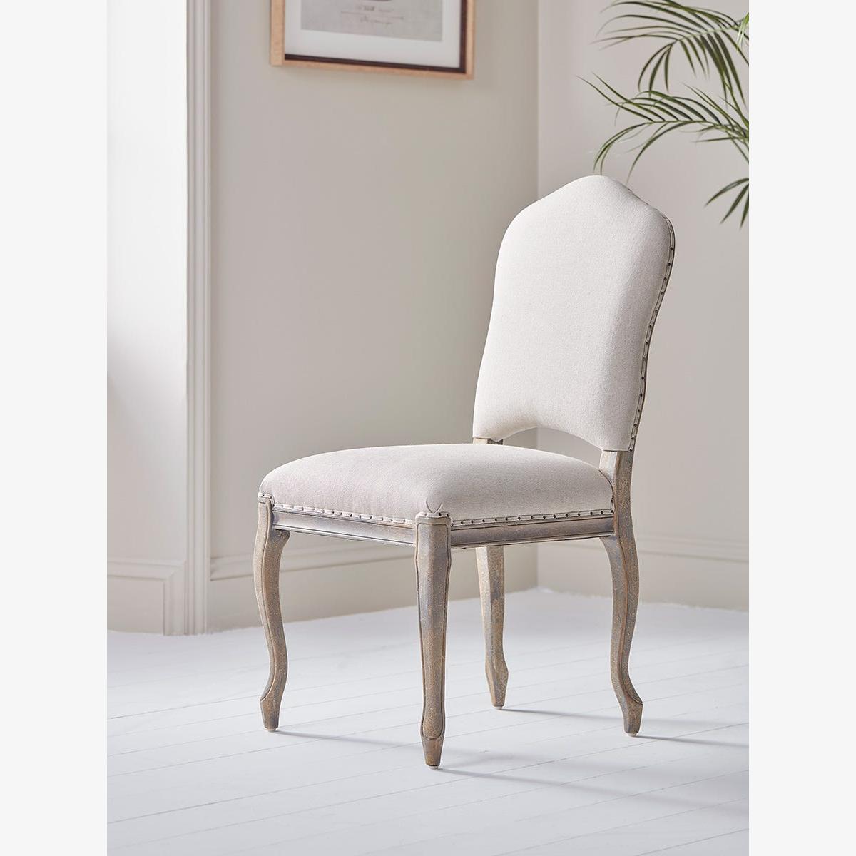 Full of French country house style, our Lille Dining Chair boasts a gently grey washed oak frame, with elegant curves and delicate carved details. With a well upholstered hemp seat and backrest embellished with traditional studs, the seat back features a contrasting stripe fabric for added interest.