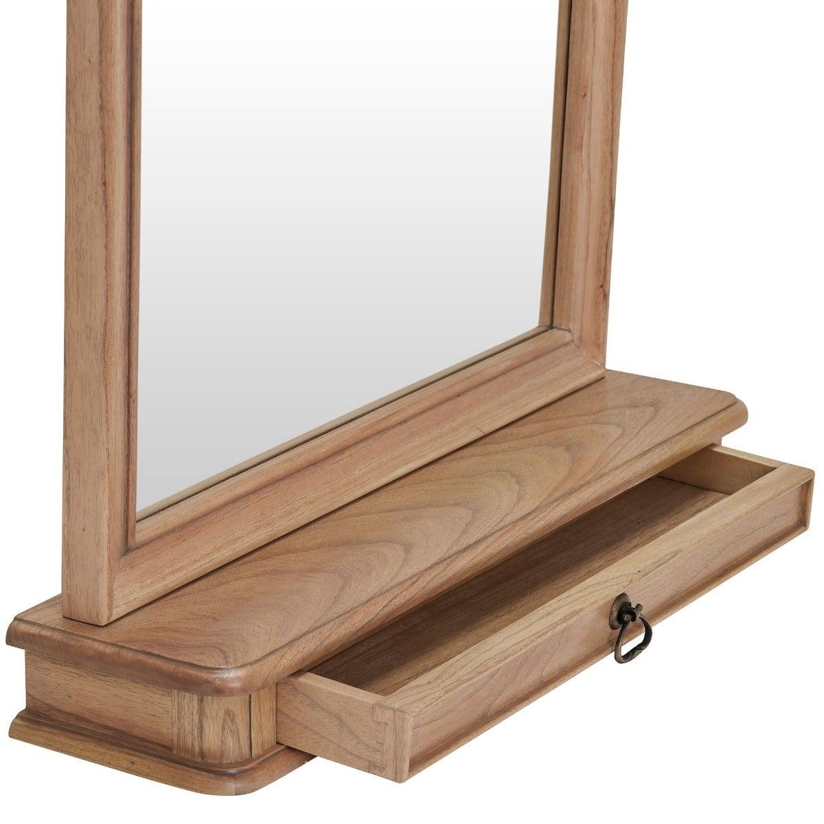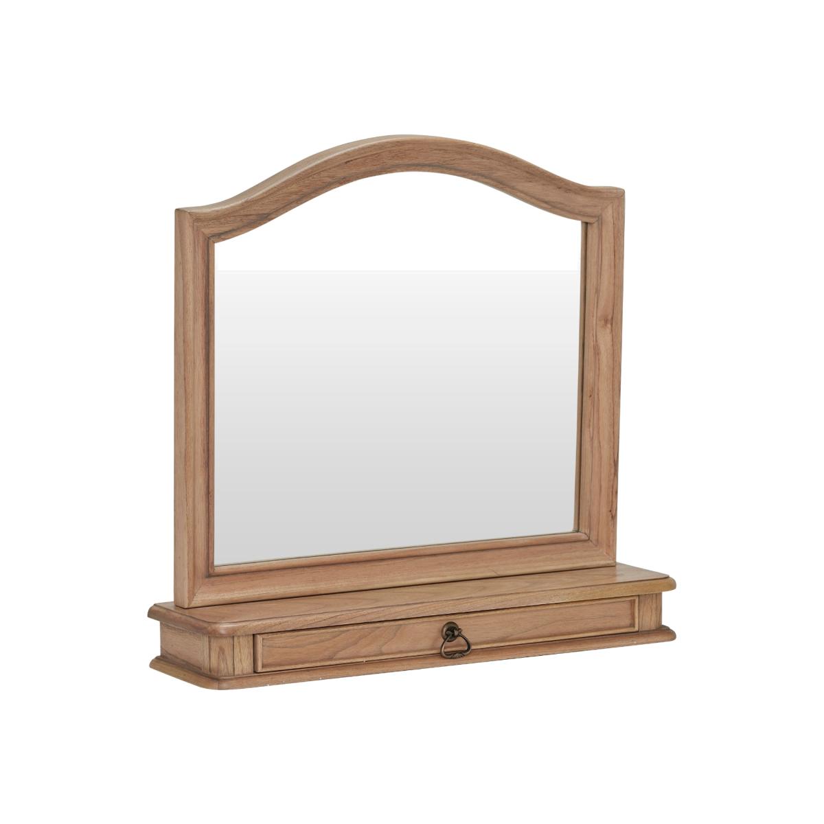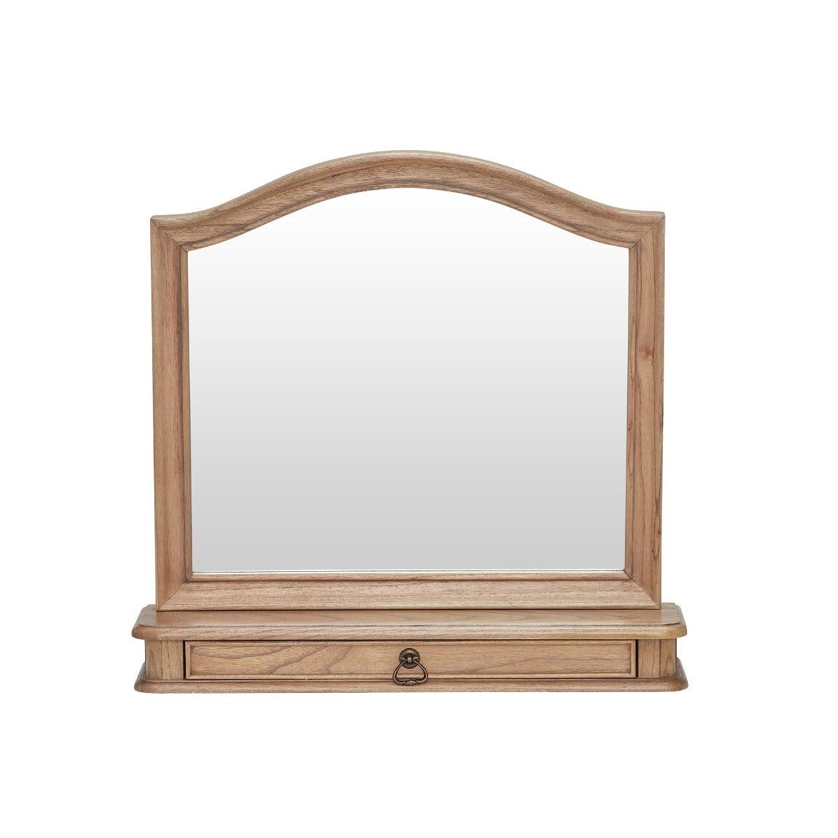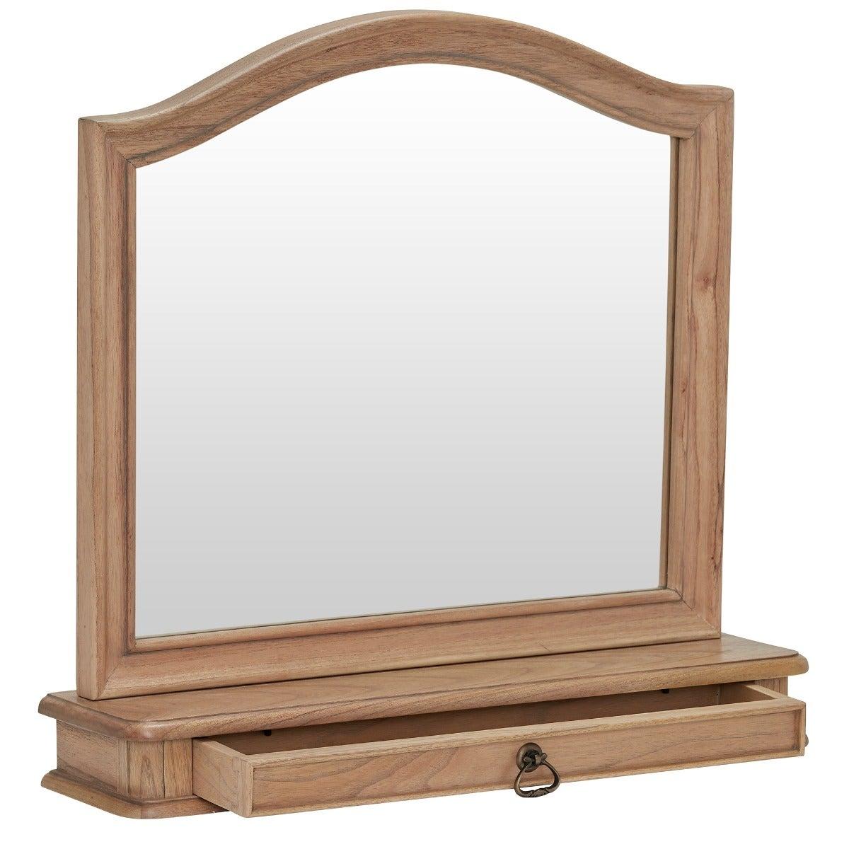 Design. This beautifully simplistic Lille Natural Mindi Wooden Gallery Mirror is part of the Lille Bedroom Collection and is perfect to sit on top of coordinating dressing tables or chests which are also made from mindi wood with a warming yellowish-white tone. This gallery mirror has a beautiful yet simplistic design with a stunning curved top and practical storage drawer, finished with a timeless swan drop handle that creates a wonderful traditional appeal. There is also a Cheval Mirror available in this highly versatile and traditional bedroom collection.