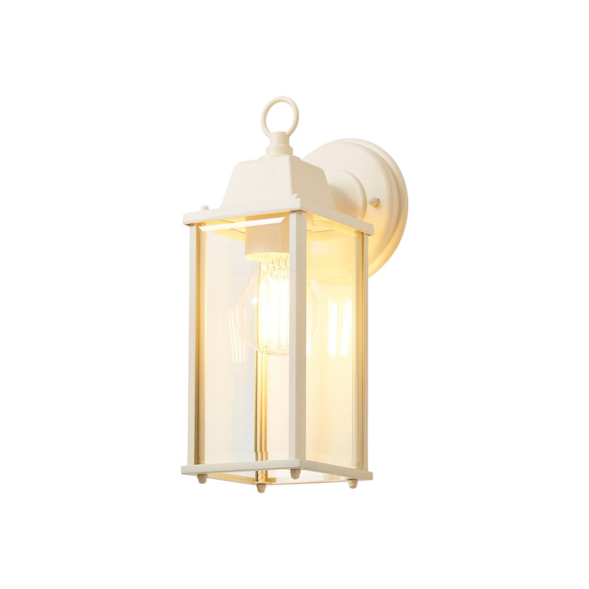 Traditional style lanterns for your porch or entryway with the Lille Outdoor Bevelled Glass Wall Light Lantern. This wall lantern is IP44 rated for durability against outdoor weather conditions. It also comes in a stunning ivory finish, blending with white walls and doors seamlessly, and comes with a stunning bevelled glass pane design that is ideal for displaying a separately sold vintage filament light bulb within.