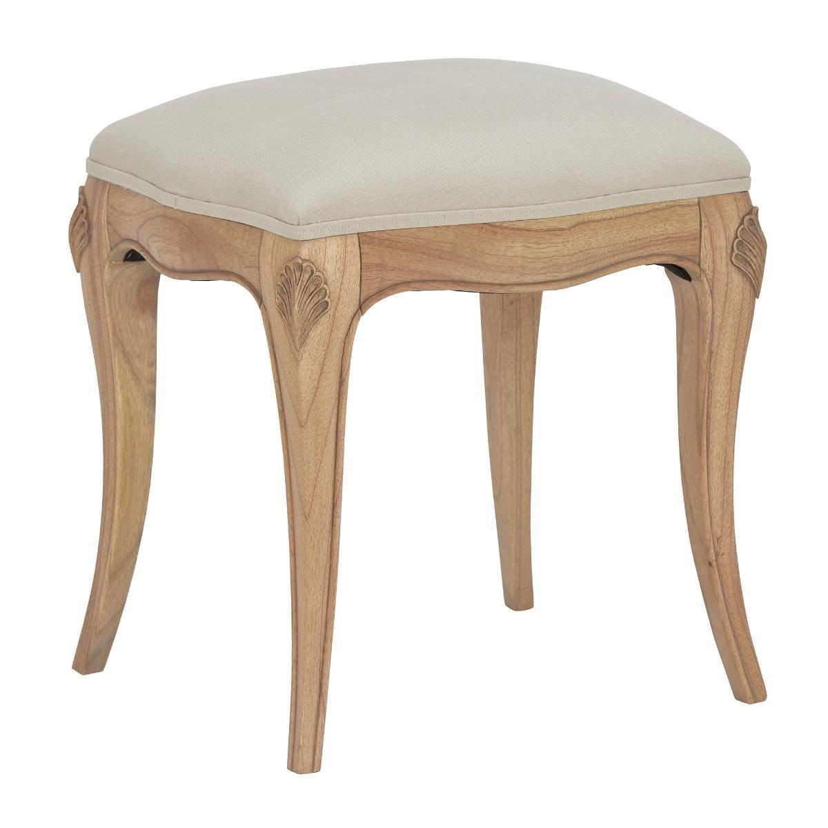 Design. Boasting French inspirations, this gorgeous upholstered stool is part of the Lille Bedroom Collection. Its mindi wood frame matches the Lille range perfectly making this an ideal finishing touch to the coordinating dressing table. Its warming tones and neutral upholstery lend themselves toward a more traditional themed interior.