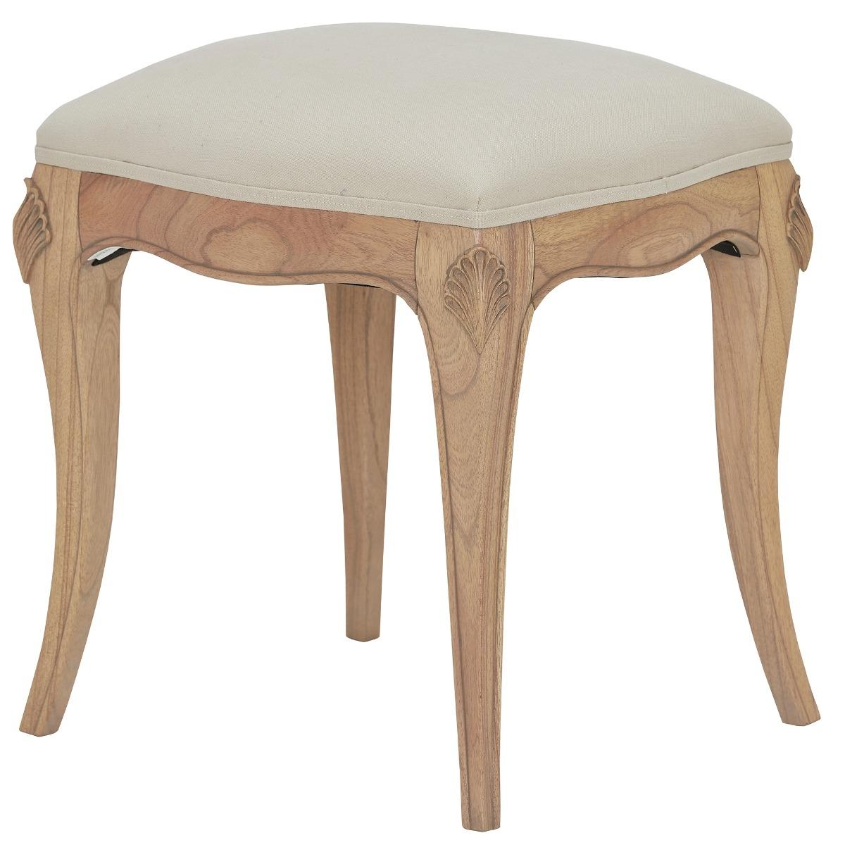 Design. Boasting French inspirations, this gorgeous upholstered stool is part of the Lille Bedroom Collection. Its mindi wood frame matches the Lille range perfectly making this an ideal finishing touch to the coordinating dressing table. Its warming tones and neutral upholstery lend themselves toward a more traditional themed interior.