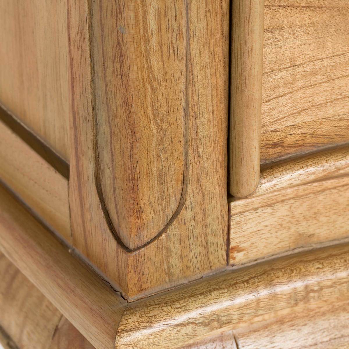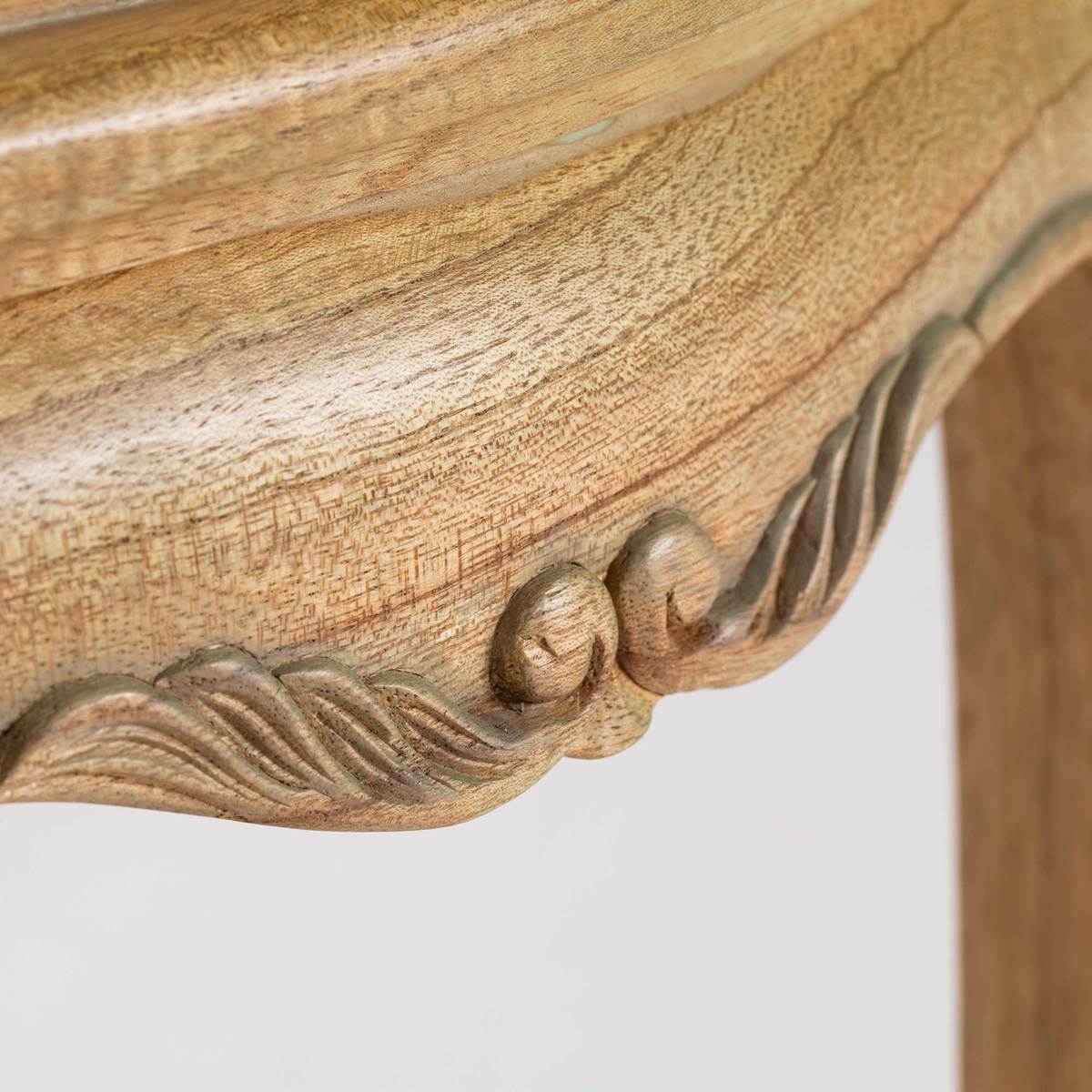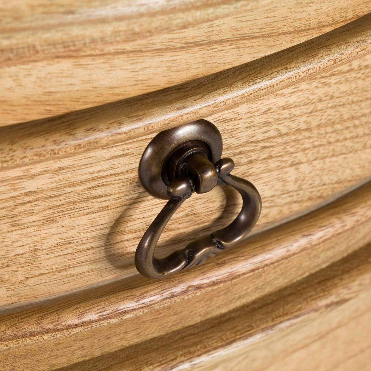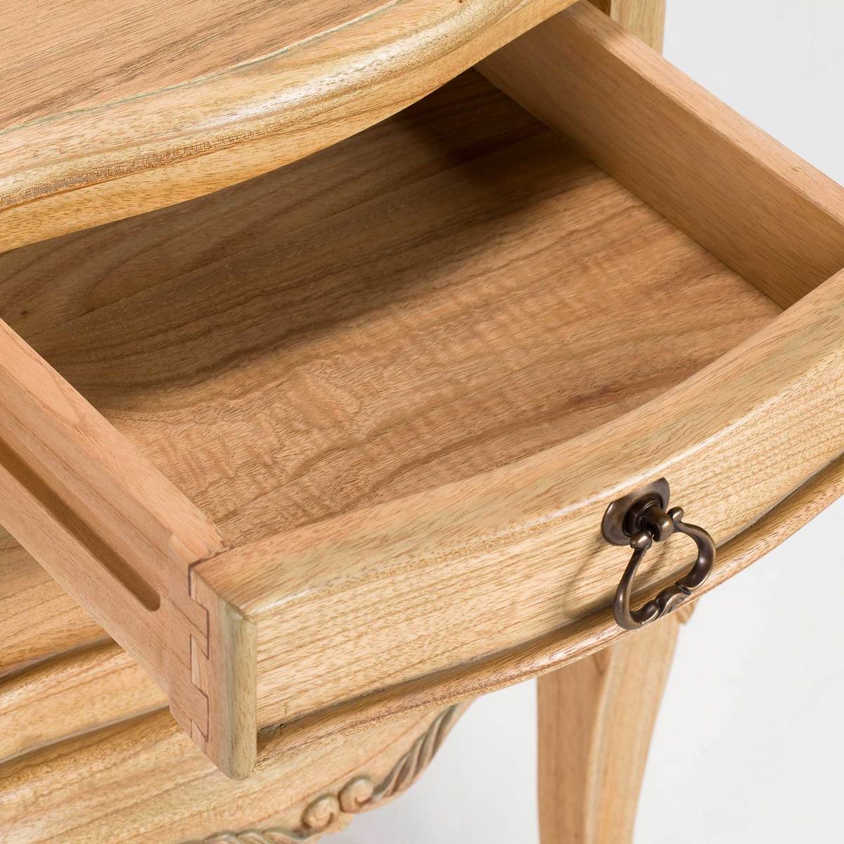 Part of the beautiful Lille range, this two drawer beside table boasts French inspirations with stunning curved legs and traditional swan drop handles. Made primarily from mindi wood with a clear lacquered finish, this bedside encapsulates the hardwoods wonderful natural grain and offers a durable nature.;Its two feature drawers offer various depths giving you ample space to store and organise all your needed essentials.