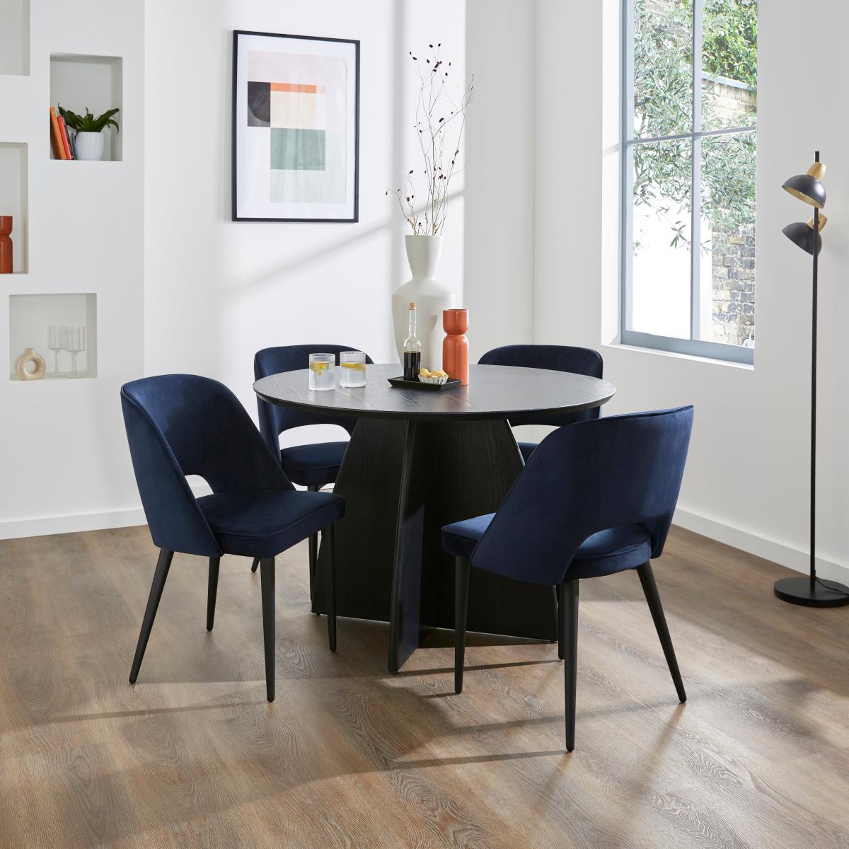 The Lillia Velvet Dining Chair in navy is a stylish choice that adds a touch of sophistication to any dining space. I love how its rich colour and plush fabric can instantly elevate a modern or contemporary interior, while still blending beautifully with more traditional settings. It’s versatile enough to work well in both casual and formal dining rooms, and pairs nicely with darker wood tones or monochromatic palettes. To style it effectively, consider keeping your table and surrounding decor minimal to let the chair’s colour stand out, or add textured cushions for extra comfort and visual interest. This chair’s elegant silhouette and luxurious finish make it an excellent investment piece that combines fashion with function.