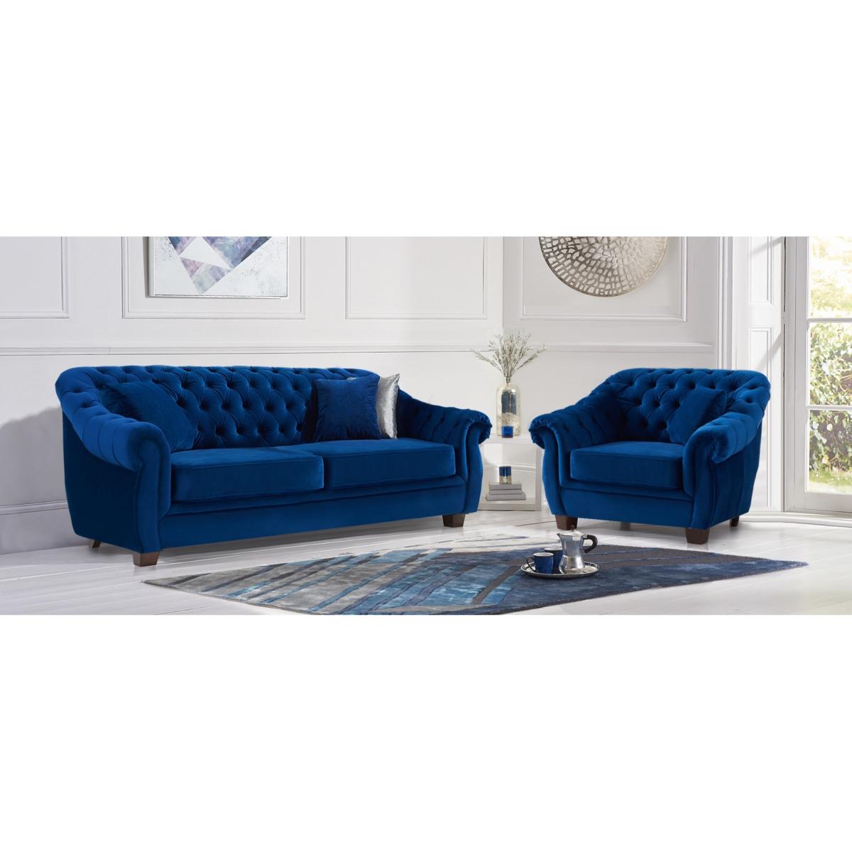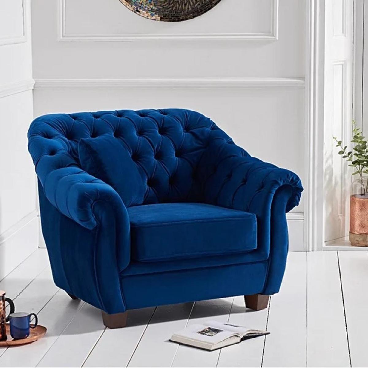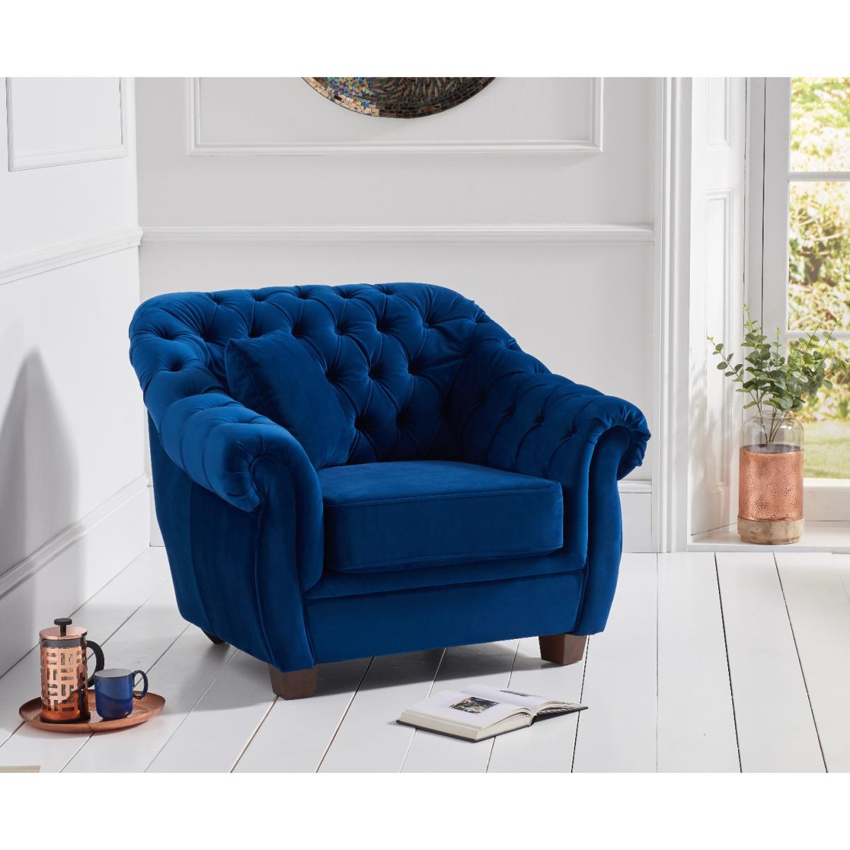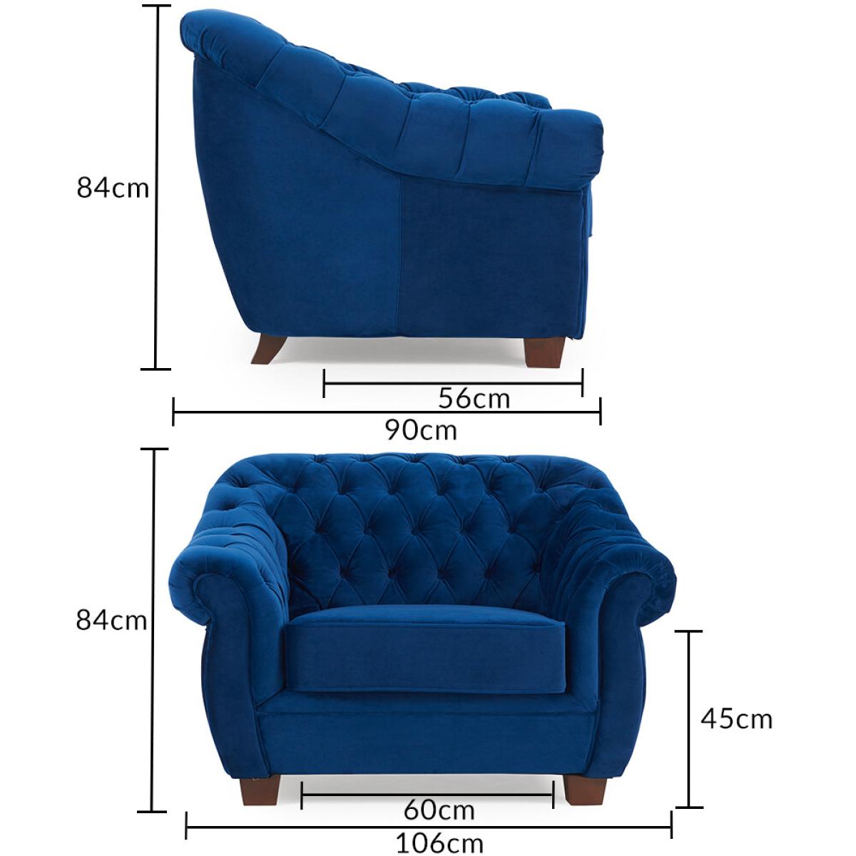 Lilly Chesterfield Blue Plush Velvet Armchair brings style and comfort to any living room setting. Chic and cosy, the armchair makes a statement in any home. Distinctly luxurious, the armchair is upholstered in soft blue plush fabric with stunning deep-buttoned detailing throughout. The elegant scrolled armrests complete the look while the deep foam filled seat cushion provides comfort. Also available in green or grey, the Lilly Chesterfield Blue Plush Armchair comes complete with a free scatter cushion.
