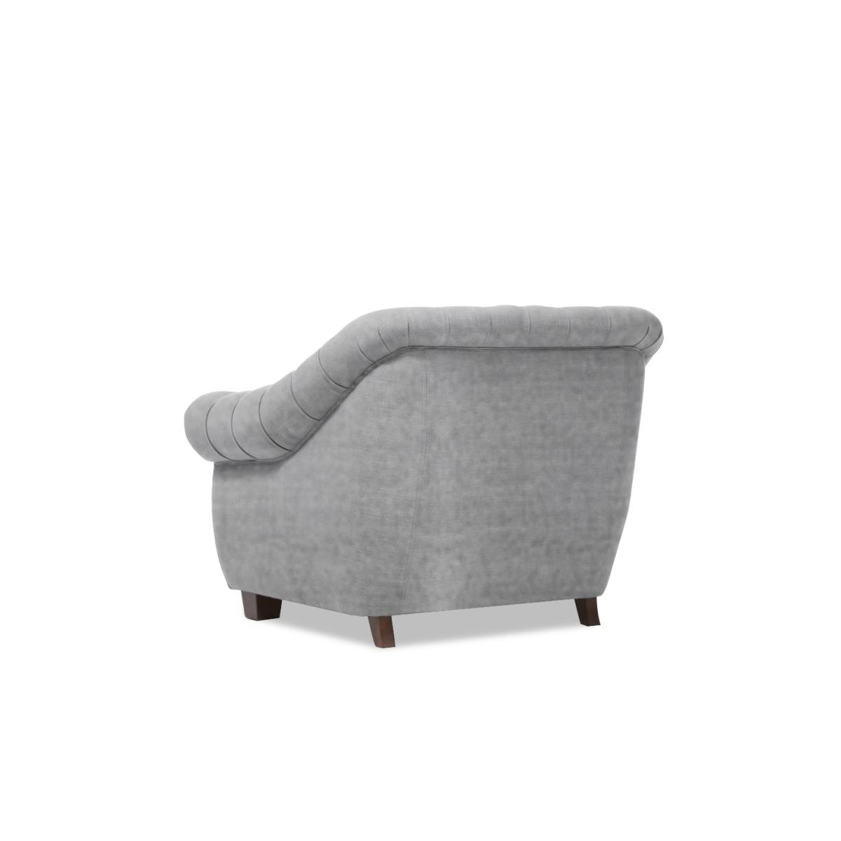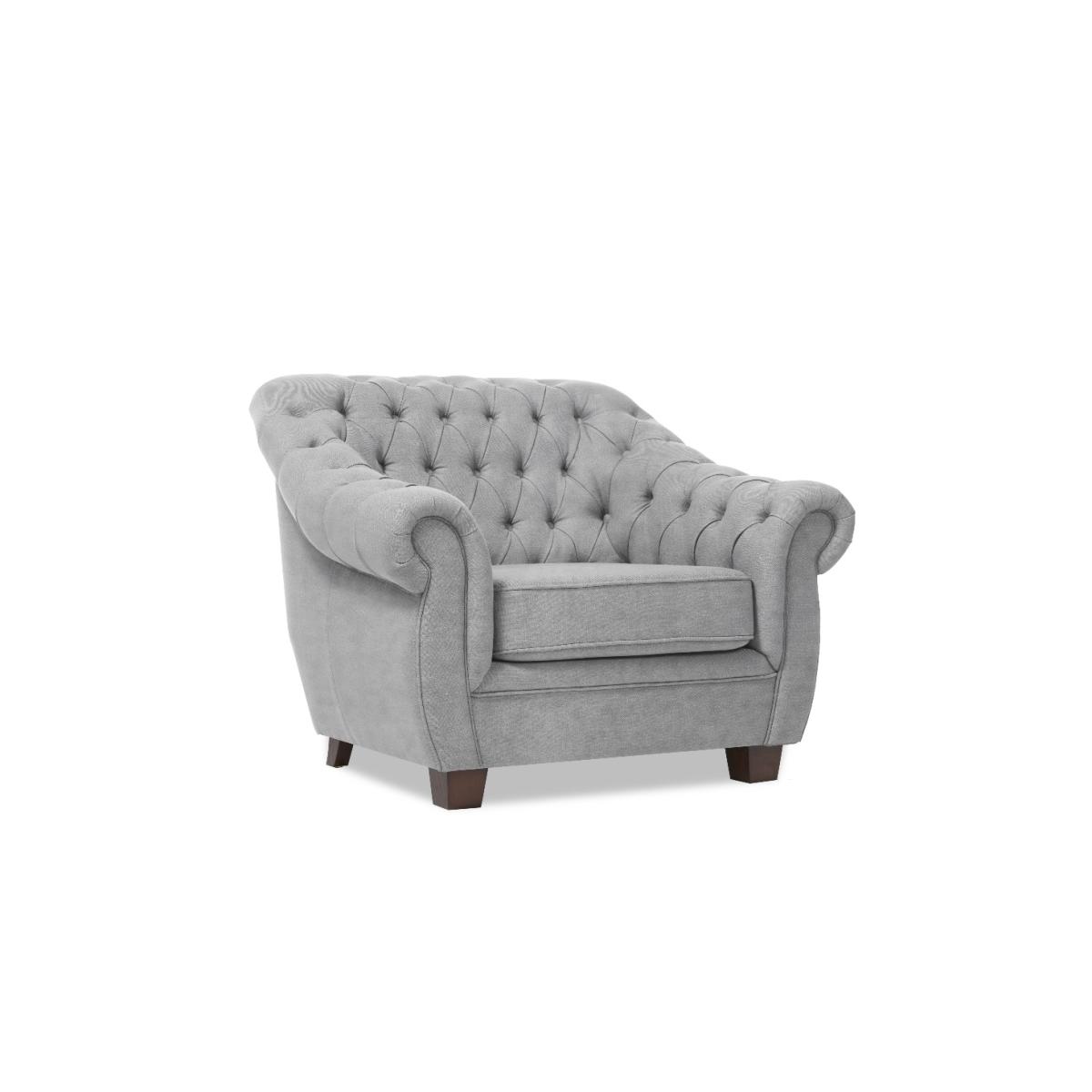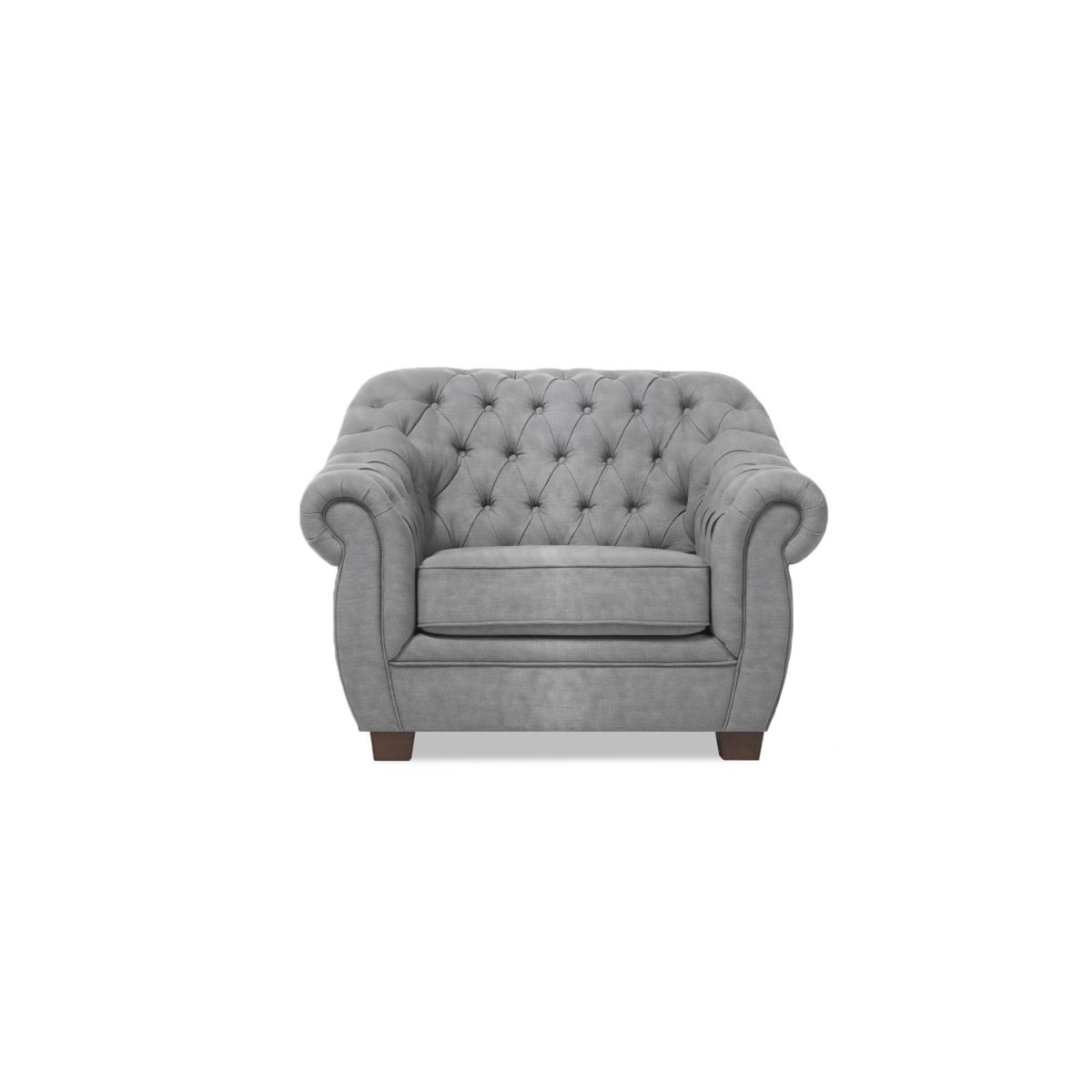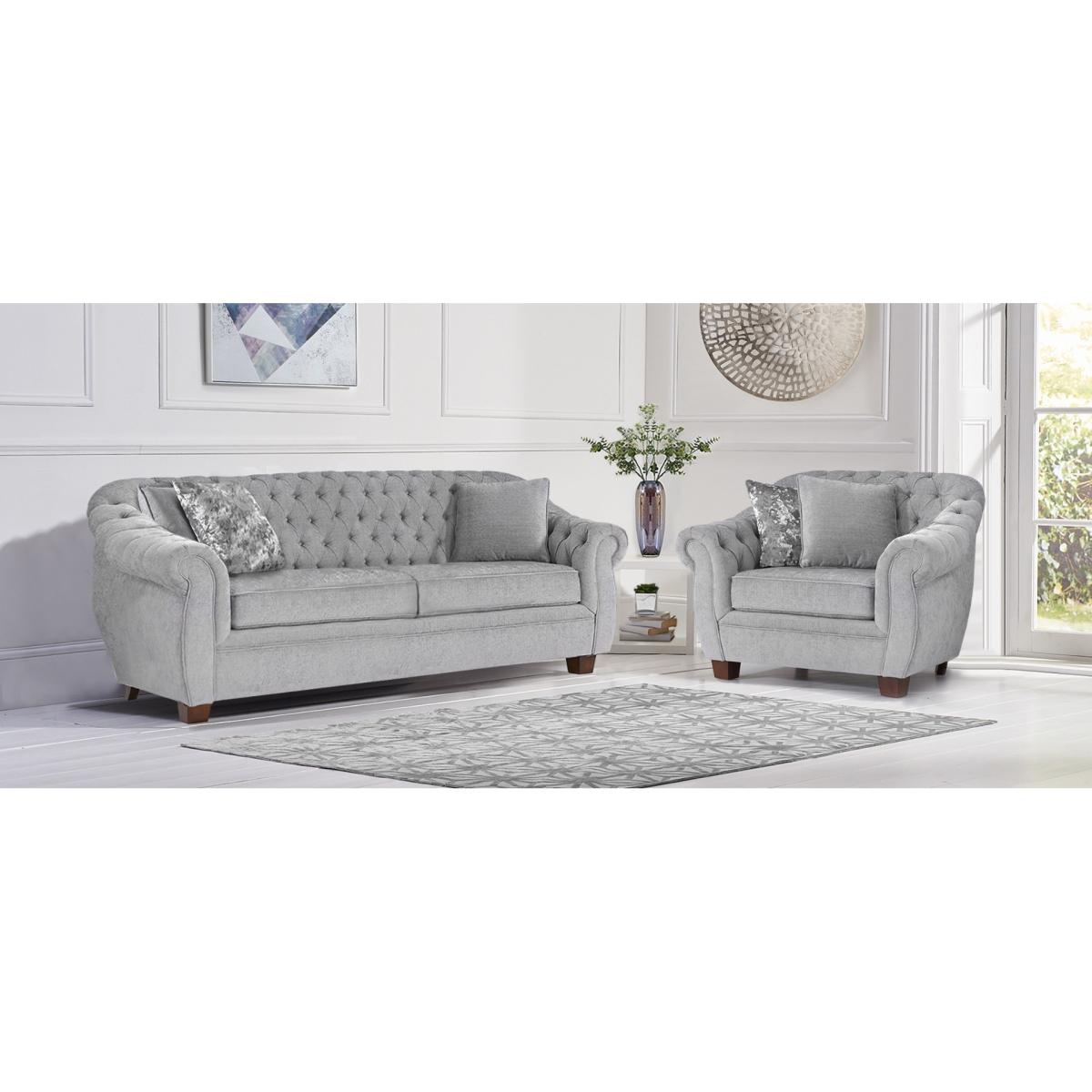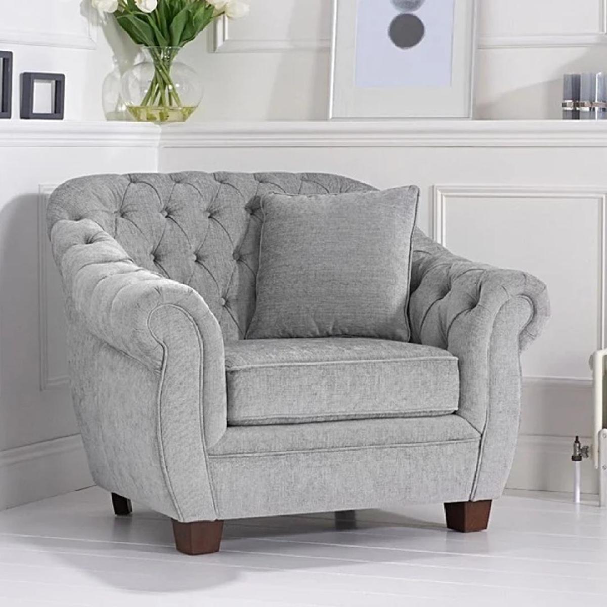 Pure comfort and stylish, classic design combine perfectly in the Lilly Chesterfield Grey Plush Fabric Armchair. Its tactile grey fabric smoothly covers a padded body featuring supportive S-springs and high-rise arms for an inviting and comfortable sit – perfect for curling up into. Plus, Chesterfield-inspired details such as deep-buttoning, scroll arms and short, sturdy legs made from solid ash add a sense of timeless style that will never be out of fashion. The Lilly Chesterfield Grey Plush Fabric Armchair suits being an accent chair as well as being the perfect finishing touch on the Lilly suite. *Comes with one free 40 x 40cm scatter cushion. PLEASE NOTE: The white background photographs depict the Lilly Grey Linen Fabric Armchair,not the Lilly Grey Plush Fabric Armchair. Apart from the fabric type,all dimensions and sizes are otherwise correct.