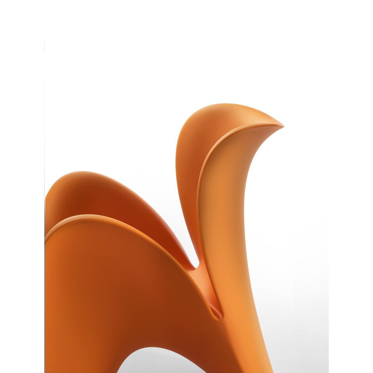 The world of flowers inspired this new line of chairs. Its structure can be described as having dynamic and wavy shapes that have been designed to give life and energy to informal and friendly spaces. Simple figures seem to come to life and to naturally transform themselves into shapes that remind us of plants or flowers, while maintaining their ergonomic features and levels of comfort. The small table completes the collection.