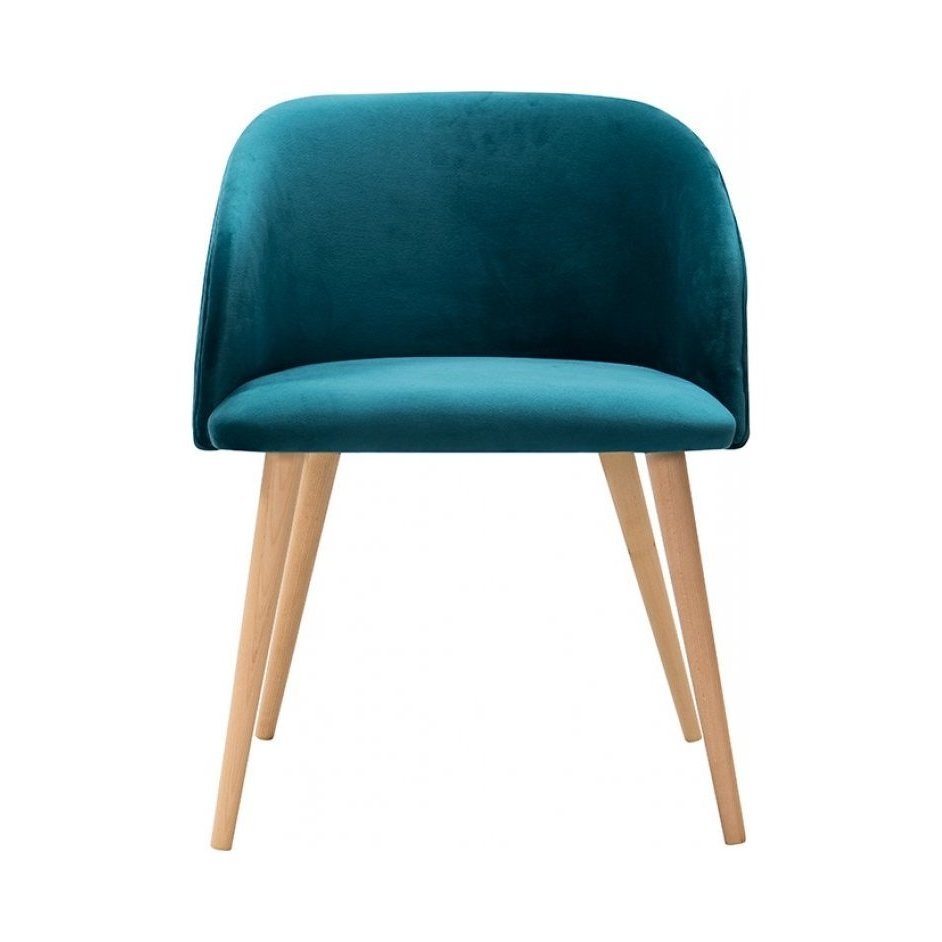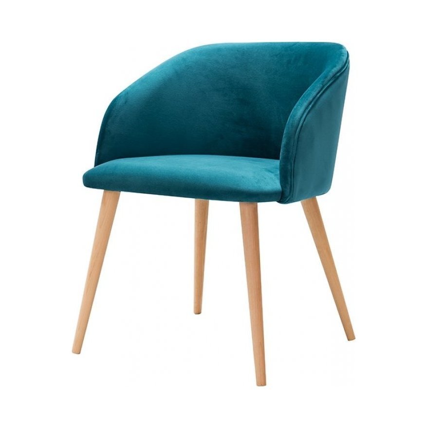 A contemporary, elegant dining Armchair May be used as a dining or occasional chair Lightweight but tough construction Solid rubber wood legs Velvet upholstery fabric Simple assembly, legs require attaching Matching bar stool and dining chair available