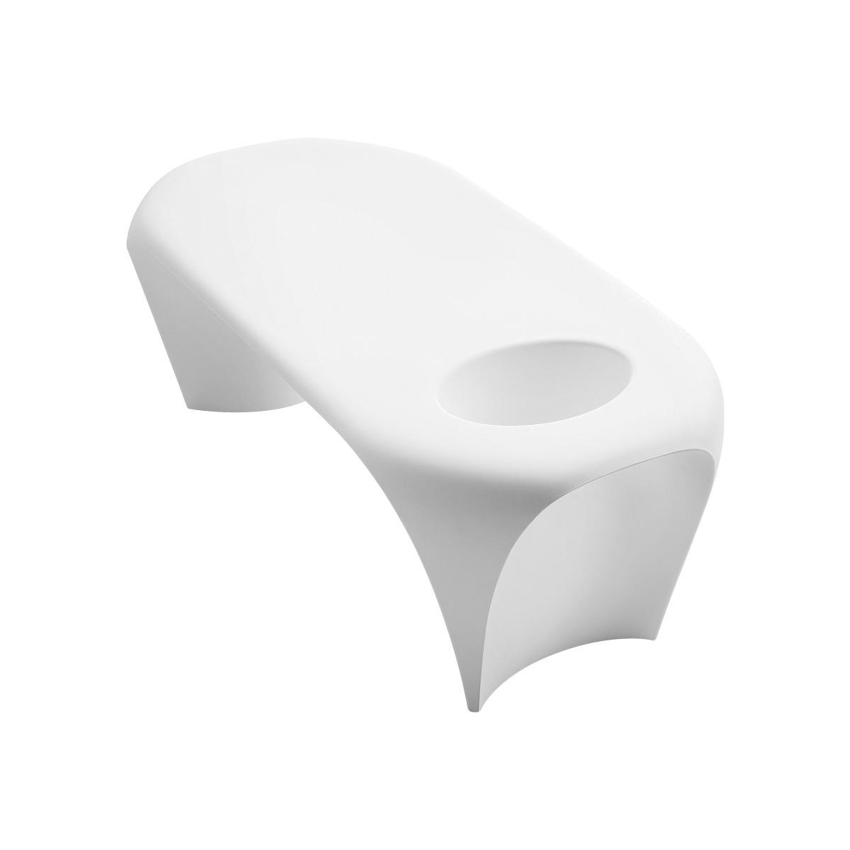 I love this piece because of its sleek, contemporary shape combined with practicality, making it a versatile addition to modern interiors. Its clean white finish and sculptural form work well in minimalist, Scandinavian, or even eclectic settings, adding a touch of sculptural art to any space. The integrated ice container is a clever feature for entertainment-focused rooms, perfect for hosting summer gatherings or casual drinks. When styling, consider pairing it with neutral-toned sofas or adding pops of colour with cushions and accessories to let the table stand out. For a cohesive look, keep accessories minimal and focus on complementing materials like light wood or metallic accents around it.