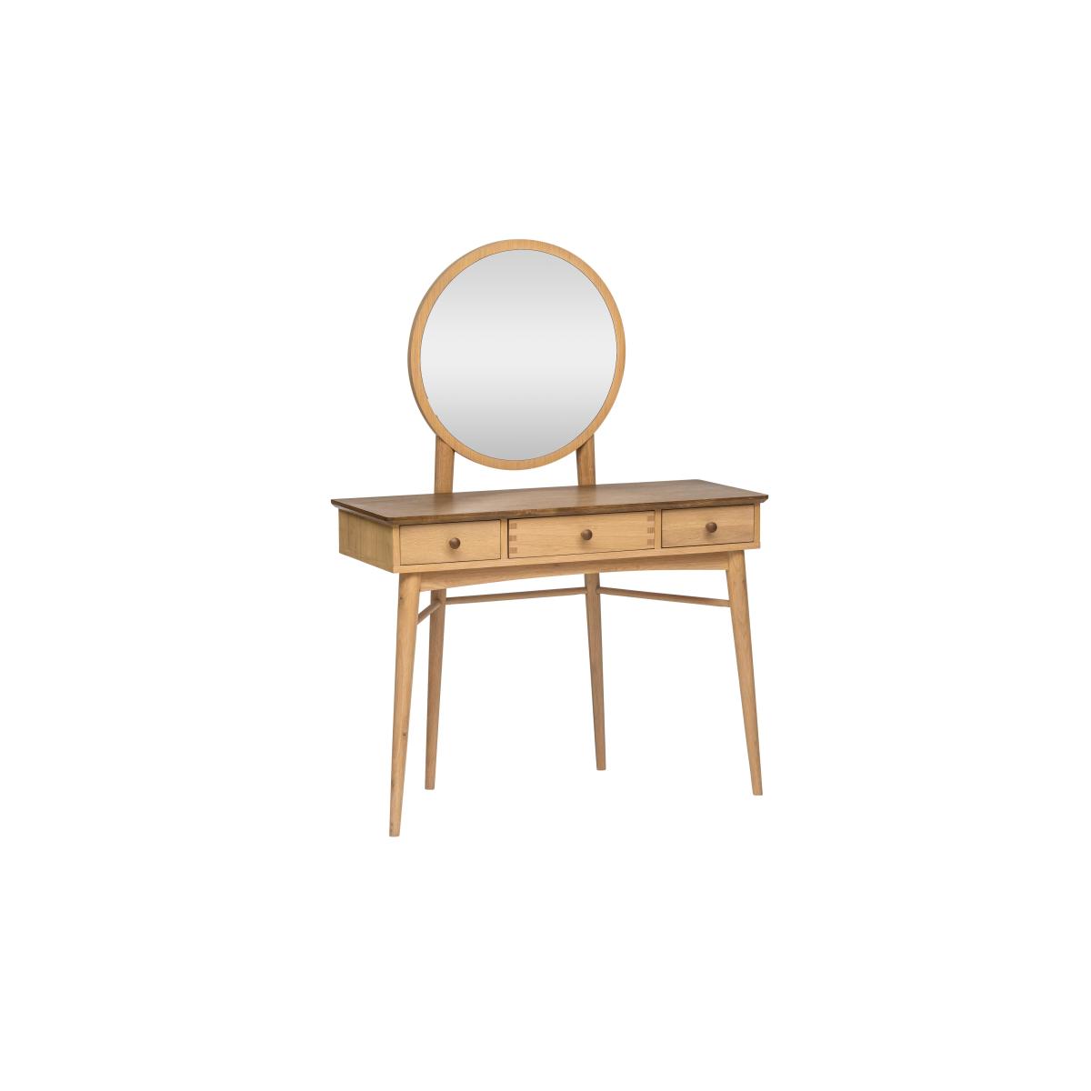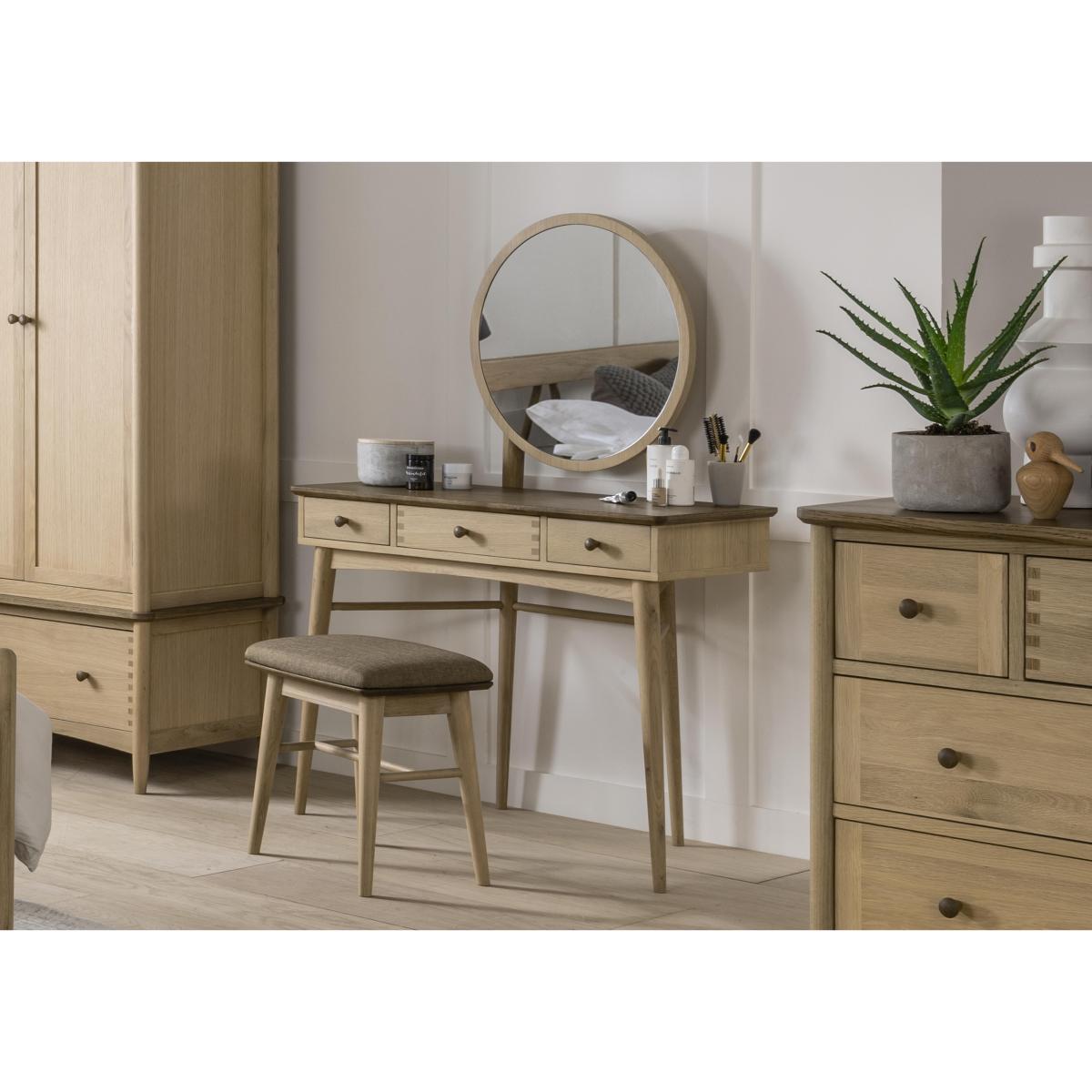 Effortlessly stylish and incredibly well-priced, the Lily range is where contemporary style and handcrafted perfection meet. Made from high-quality pale oak, this collection offers a new spin on Scandi design with its eye-catching two-tone oak and walnut finish. It’s a practical choice too. You’ll find everything you need for a functional bedroom space, including a beautiful high foot end bed frame, chests of drawers, bedside tables and more. Thoughtfully designed and sturdily constructed, the Lily collection is both timeless and on trend. The perfect addition to your Scandi bedroom, the handcrafted Lily dressing table and mirror set is both practical and elegant. There’s plenty of room for makeup and jewellery in the three drawers. Why you'll love it. Contemporary dressing table and mirror is handcrafted to perfection. Elegant Scandi style. Two-tone look in pale oak and walnut. Top and drawer handles have a walnut wood stain. Slender tapered legs. Sturdily constructed with hidden and visible dovetail joints. A matt lacquered finish protects and enhances the wood. This dressing table and mirror set is part of the Lily bedroom furniture range. What you need to know. Made with solid pale oak and oak veneers. 3 drawers. Assembly required to attach mirror and dressing table to support bars. Bolts provided. As oak is a natural material, knots and markings are to be expected. Avoid placing in direct sunlight, and take care to use coasters and placemats. Complete the set with the Lily dressing table stool. The Lily range includes chests of drawers, a wardrobe and a bed frame. WARNING!. Furniture can tip over unexpectedly and cause injury. This item must be fixed to a wall using the anti-tip kit provided. Be sure to use the correct wall fixings suitable for the walls in your home. Furniture Village is not able to fix anti-tip devices for you. Seek professional advice if you are unsure.
