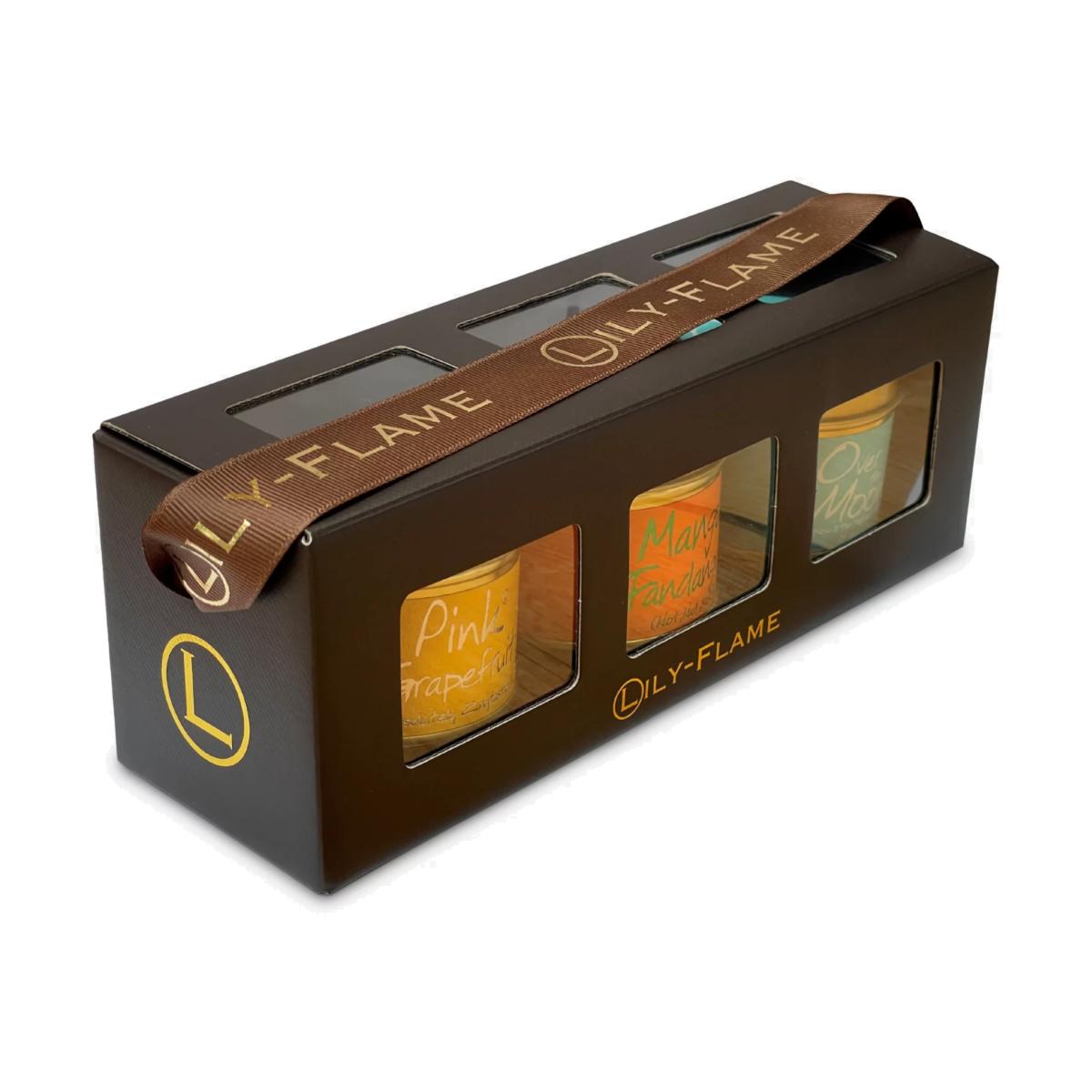 A beautifully presented gift set of three, fresh, fun, fragrant candle tins, it's the perfect present to brighten up someone’s day. The three tins contain: Pink Grapefruit; Zingtastic! A clean, sophisticated zingy treat. Florida sunlight in candle form! Mango Fandango; Hot! Hot! Hot! The worlds tangiest, most mango-ey candle. In delicious orange and shiny green. Silly, sweet and very spesh! Over The Moon; Now is the Happiest Time of your Life! A fresh & slightly spicy scent. Very spring like and uplifting with a label to compliment. Like all of Lily-flame’s products, these candles are cruelty free and vegan friendly!