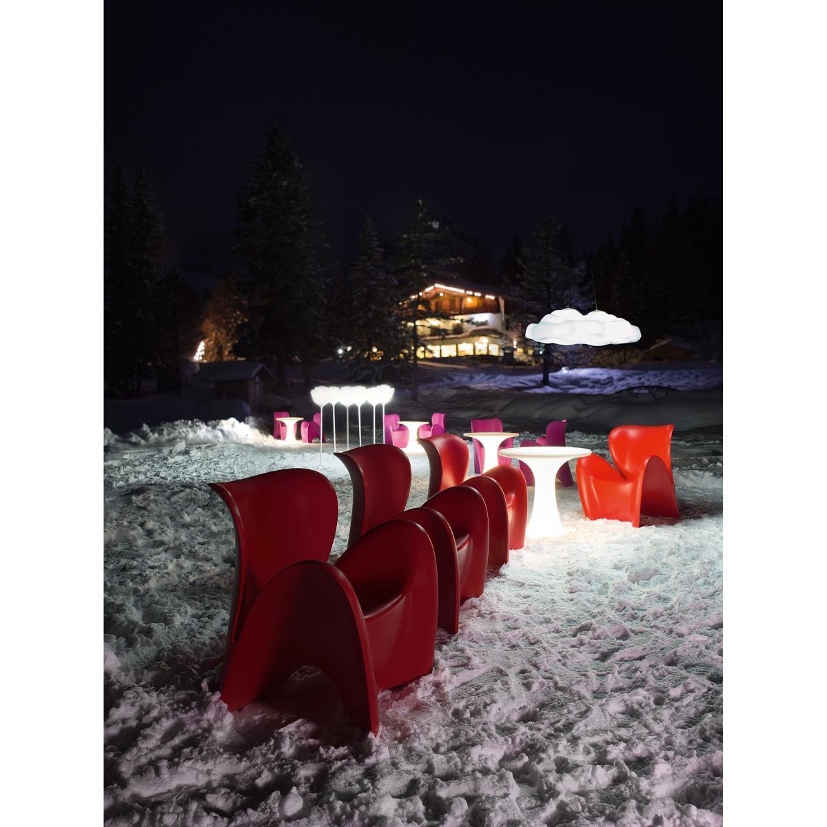 The world of flowers inspired this new line of chairs. Its structure can be described as having dynamic and wavy shapes that have been designed to give life and energy to informal and friendly spaces. Simple figures seem to come to life and to naturally transform themselves into shapes that remind us of plants or flowers, while maintaining their ergonomic features and levels of comfort. The small table completes the collection.