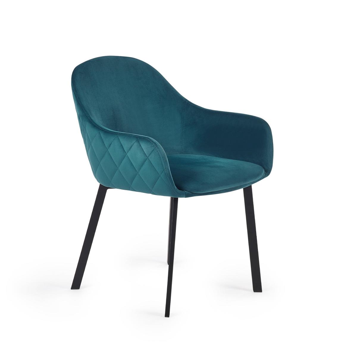 * 2 x Dining Chairs* Diamond stitching detail* Black Metal Legs Upholstered in sumptuous teal velvet fabric and featuring textured diamond stitching on the back, these chairs exude opulence. The sleek metal legs add a contemporary touch, while the plush upholstery ensures a comfortable seating experience.