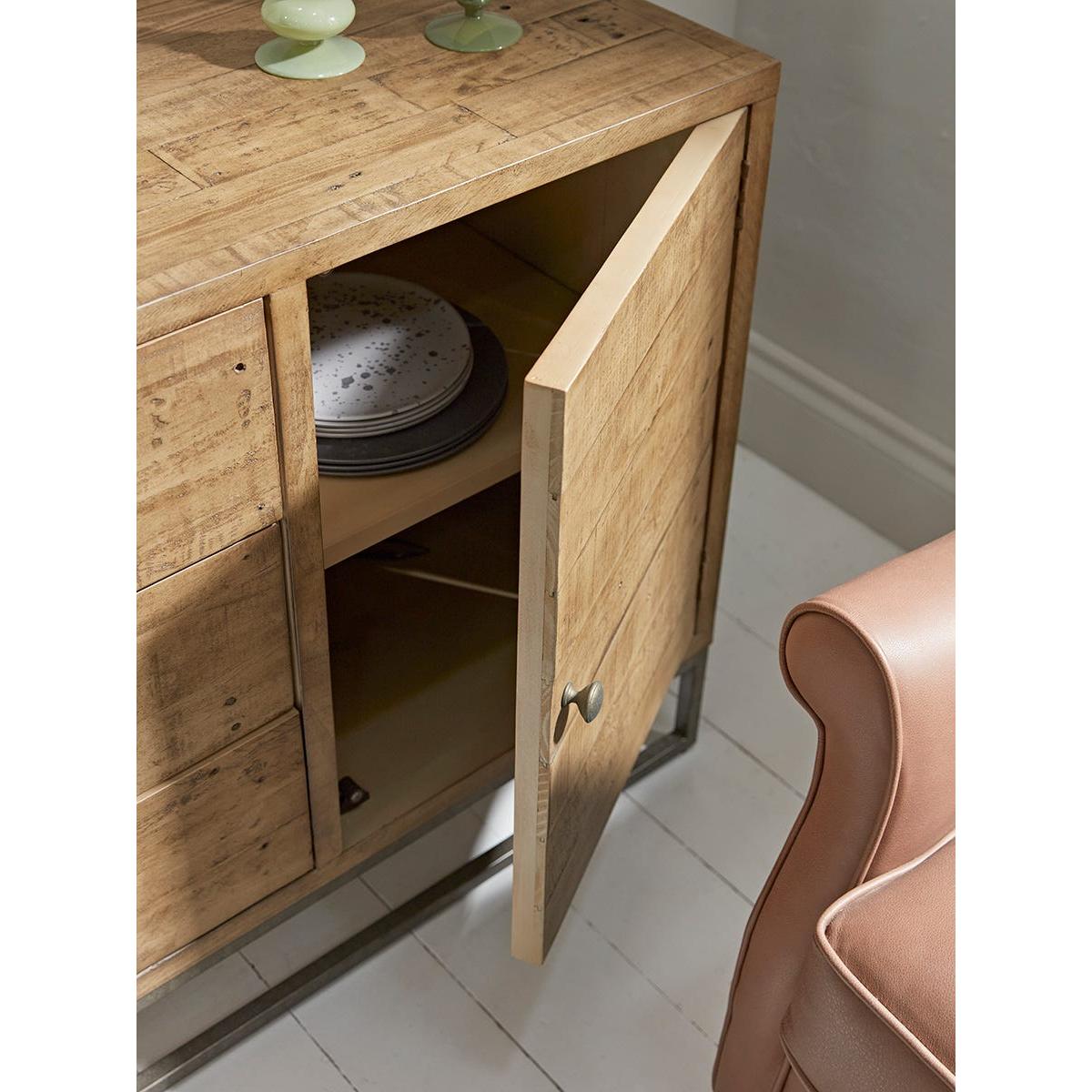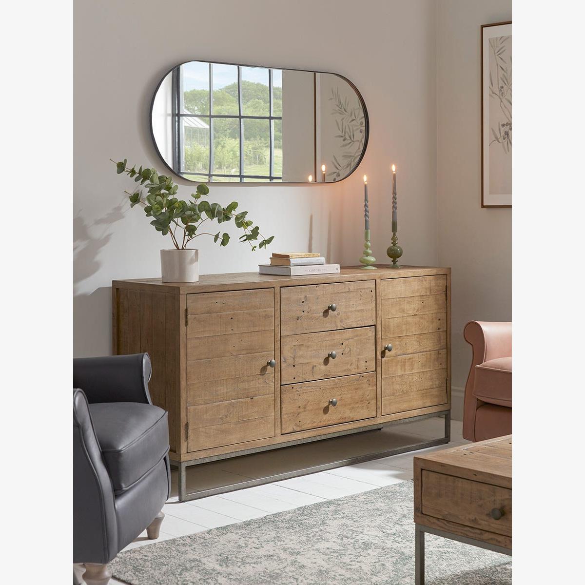 With a natural grain in the wood giving a unique and rustic appearance to each piece, our Lima sideboard brings a perfect industrial look to your space. Two cupboards and three drawers provide ample storage make it perfect for your living or dining area.  Sleek metal legs complement the boxy structure, adding an element of lightness and modernity to the piece. Explore the rest of our Lima collection here.