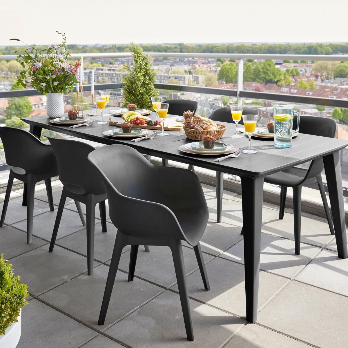 Dine in style with this Lima Table and 6 Chair Set. With a gorgeous graphite grey colourway, this set has been crafted from a strong, durable moulded resin that is water and UV resistant. Flat packed for convenience, this set requires full assembly.