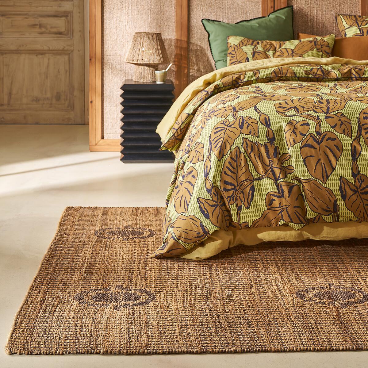 Woven on a cotton and jute canvas, the black stripes contrast with delicately crafted tribal prints. The Limari rug will add a graphic and authentic touch to your home. Designed by La Redoute Interiors. Product Details • 90% jute, 10% cotton • Thickness: 0.5mm • Weaving type: Handmade • Underfloor heating compatible: Yes • Interior Use:Yes • For outdoor use: No. Quality • Hand-braided, each piece is unique and may have small irregularities which make it authentic.. Colours and dimensions may vary slightly. • Given its artisanal manufacture, the jute rug is not suitable for an area of heavy foot traffic. Care information • Once unrolled, you must wait a few days for the carpet to return to its initial shape.. • To keep the edges flat, roll your mat in the opposite direction. Leave it like this for an hour then put it back flat and place a heavy object on it for 2 days. • New, the carpet may give off an odour which dissipates over time. Remember to regularly ventilate your room to reduce it. • To preserve its appearance, rotate your rug regularly in one direction or the other to minimise localised wear in the same places (due to successive passages), and loss of colour due to regular light exposure. Care instructions • Vacuum regularly • Compatible with robot vacuum cleaners: No • To remove a stain, immediately dab the carpet with an absorbent tissue or damp cloth if necessary. For larger and deeper stains, you can call a professional service. Dimensions • Width 120 x Length 170cm • Width 160 x Length 230cm • Width 200 x Length 290cm • FIBRE FROM A WATER-SAVING CROP. Jute is a material that requires little irrigation and very few phytosanitary products.