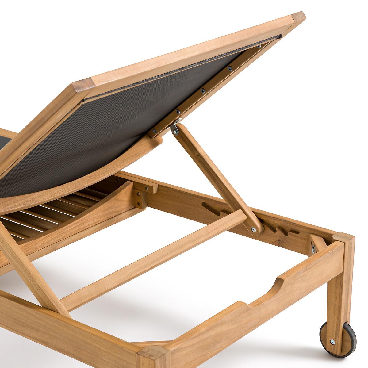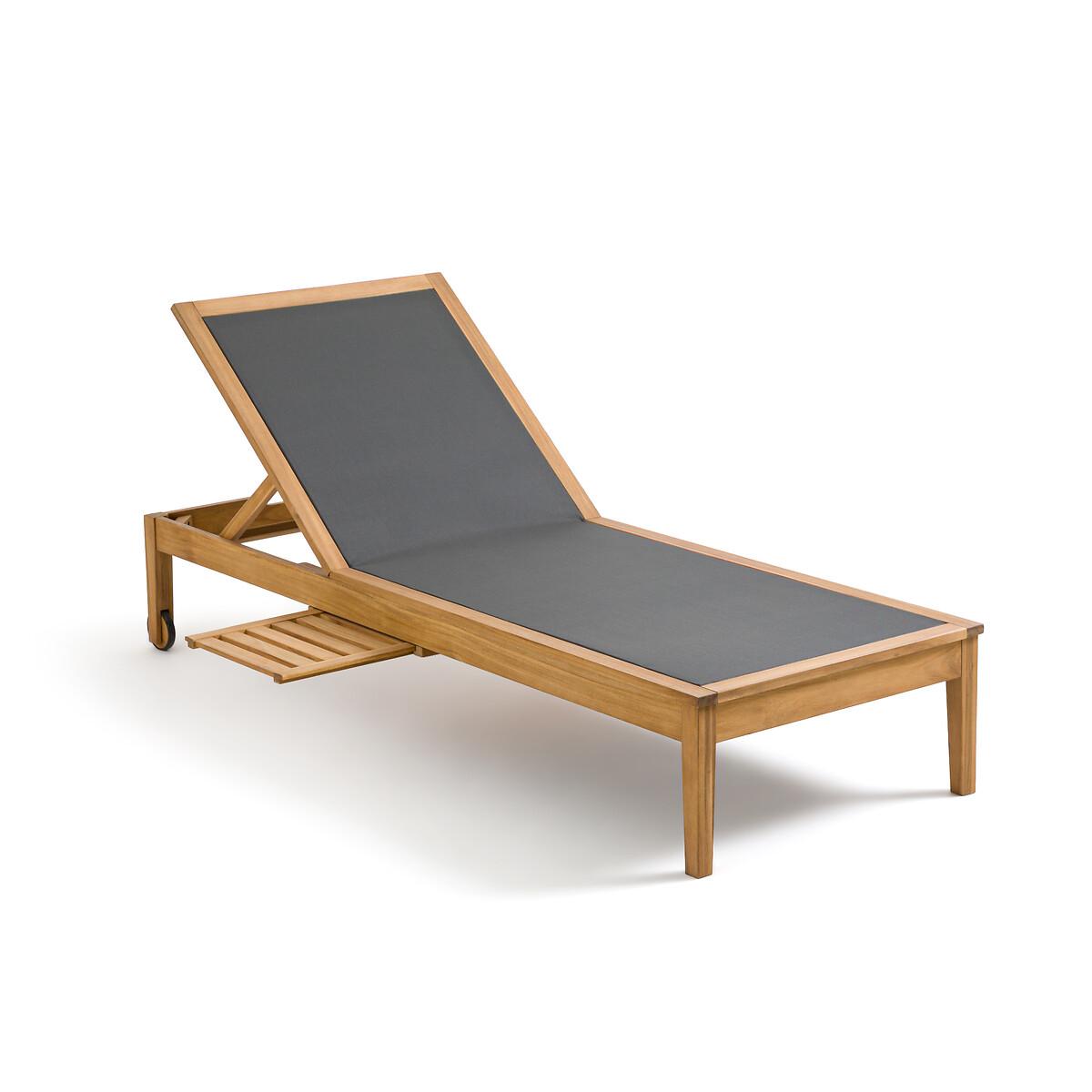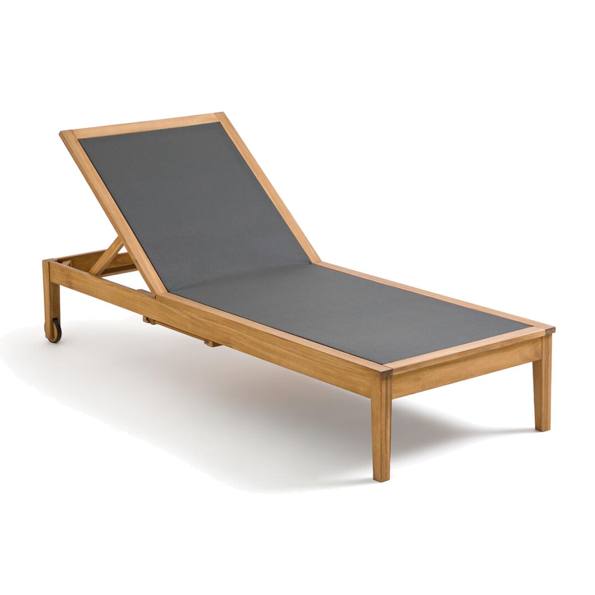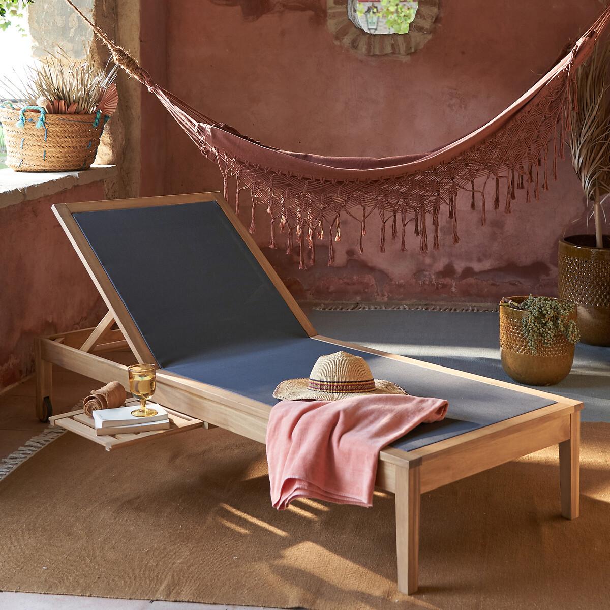 Enjoy the sun with the Limbo sun lounger. Get comfortable with its 4-position adjustable backrest. Clever, it has a retractable shelf under the seat to store your belongings. Product Details • FSC® acacia structure with oiled finish • 100% polyester canvas • Extendable, retractable side table under the seat • Backrest adjustable to 4 positions • 2 wheels. Quality Info • Acacia is a wood that offers good mechanical properties (good resistance to insects and fungi) and is resistant to bad weather (alternation of dry and humid periods).Dimensions • Length: 195cm • Height: 35cm • Width: 75cm • Weight: 17kgDelivery:. This product is sold ready to assemble. Note! Please check that all access points are large enough to accommodate your delivery (doors, stairs, lifts). • WOOD FROM SUSTAINABLY MANAGED FORESTS. FSC® certified wood comes from forests that are environmentally, socially and economically well managed. Dimensions and weight of parcel1 parcel • L202 x H13.5 x D79.5cm. 21.5kg.
