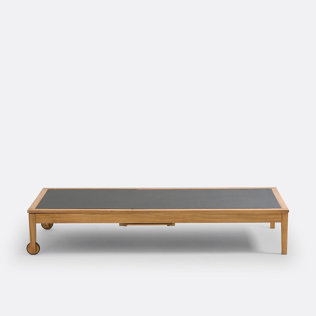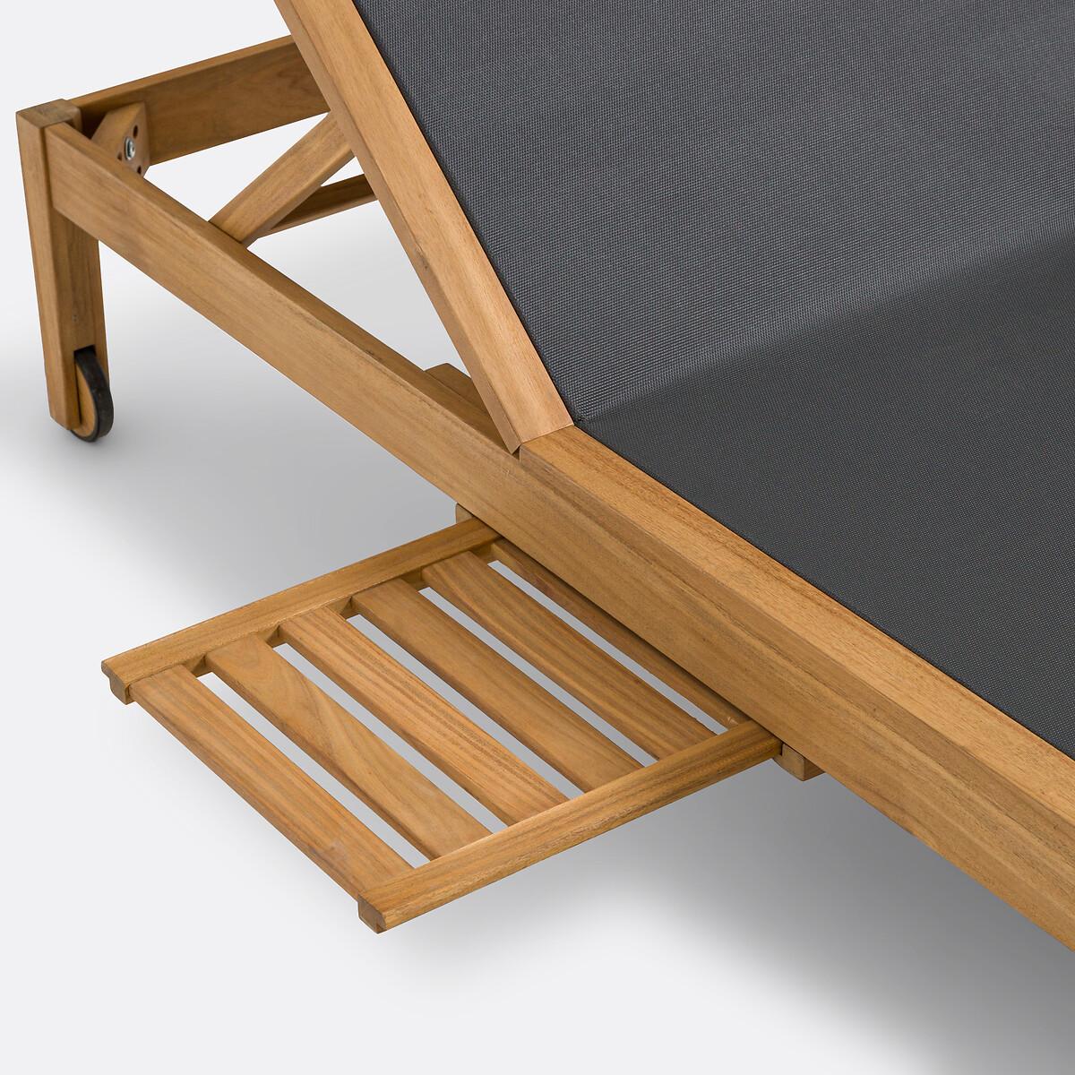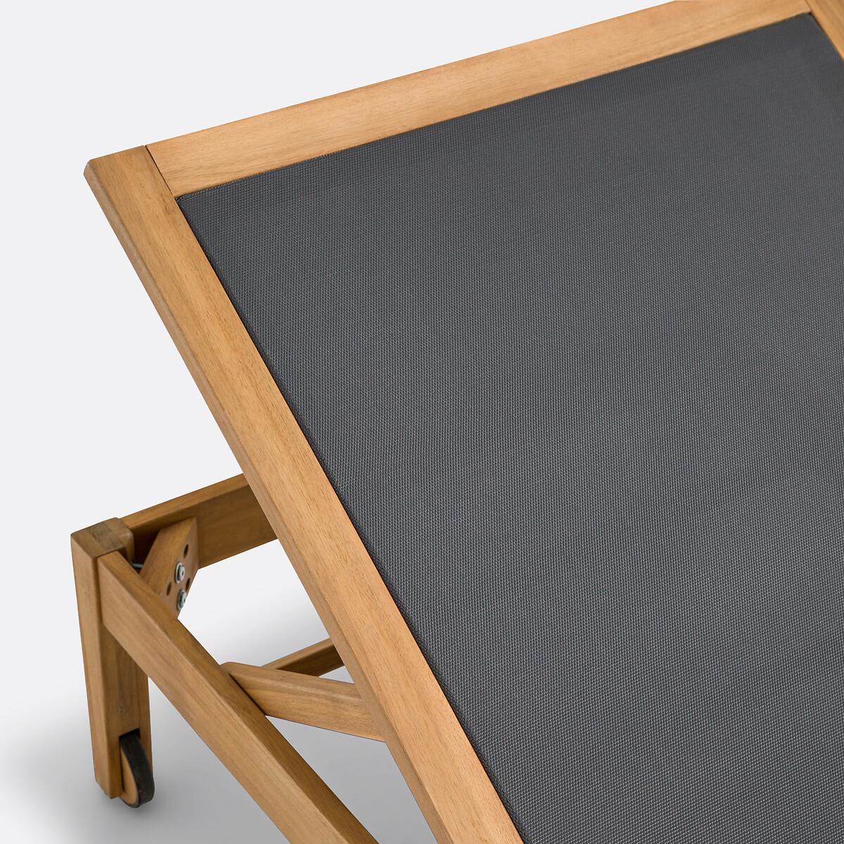 Enjoy the sun with the Limbo sun lounger. Get comfortable with its 4-position adjustable backrest. Clever, it has a retractable shelf under the seat to store your belongings. Product Details • FSC® acacia structure with oiled finish • 100% polyester canvas • Extendable, retractable side table under the seat • Backrest adjustable to 4 positions • 2 wheels. Quality Info • Acacia is a wood that offers good mechanical properties (good resistance to insects and fungi) and is resistant to bad weather (alternation of dry and humid periods).Dimensions • Length: 195cm • Height: 35cm • Width: 75cm • Weight: 17kgDelivery:. This product is sold ready to assemble. Note! Please check that all access points are large enough to accommodate your delivery (doors, stairs, lifts). • WOOD FROM SUSTAINABLY MANAGED FORESTS. FSC® certified wood comes from forests that are environmentally, socially and economically well managed. Dimensions and weight of parcel1 parcel • L202 x H13.5 x D79.5cm. 21.5kg.