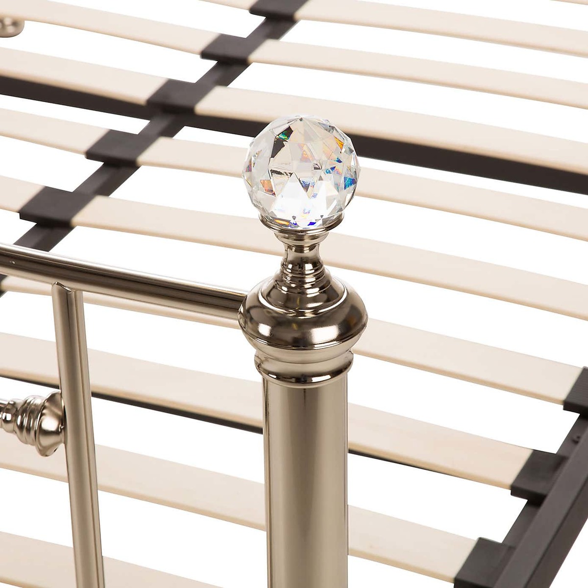 An elegant metal bed frame with a striking chrome finish and crystal finials. Available in different sizes. Bring back old fashioned elegance with the Limelight Callisto Chrome and Crystal Bedstead. Made from metal with a subtle chrome finish and beautiful crystal finials, this bed is sure to be a stand-out feature of any home. Please note, unfortunately, we cannot deliver this item to the Channel Islands.