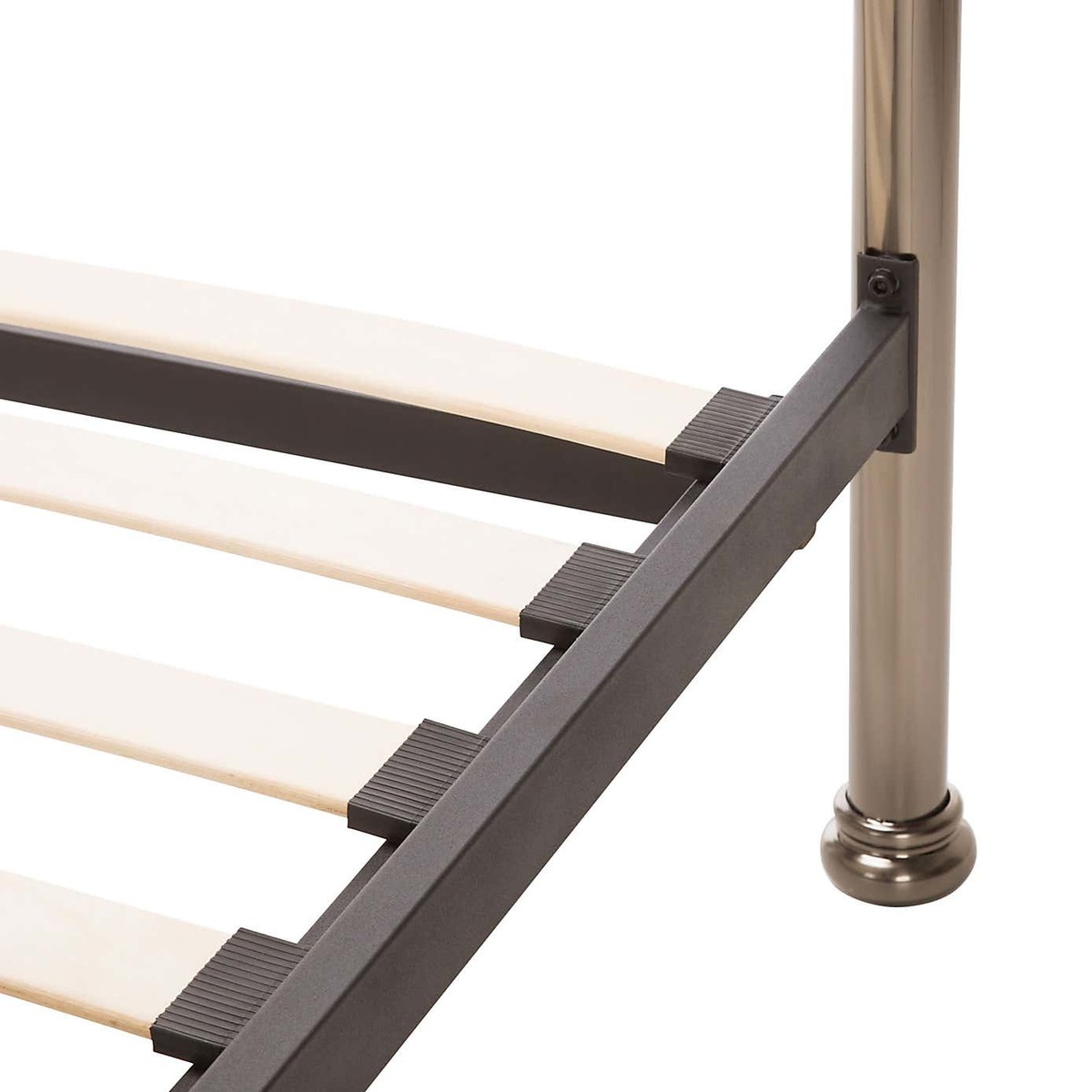 I’m a fan of this nickel-tone metal frame because its clean lines and subtle sheen slot straight into both contemporary and heritage schemes. The arched detailing adds just enough character without feeling fussy, so it works equally well in a pared-back Scandinavian bedroom or a more traditional setting with floral wallpapers and dark woods. For styling, keep your bedding neutral - think crisp white linens with a chunky knit throw in a muted tone - and introduce texture through a woven rug at the foot of the bed and linen cushions. Pair with slim wooden or metal bedside tables and a couple of well-placed plants to soften the overall look.