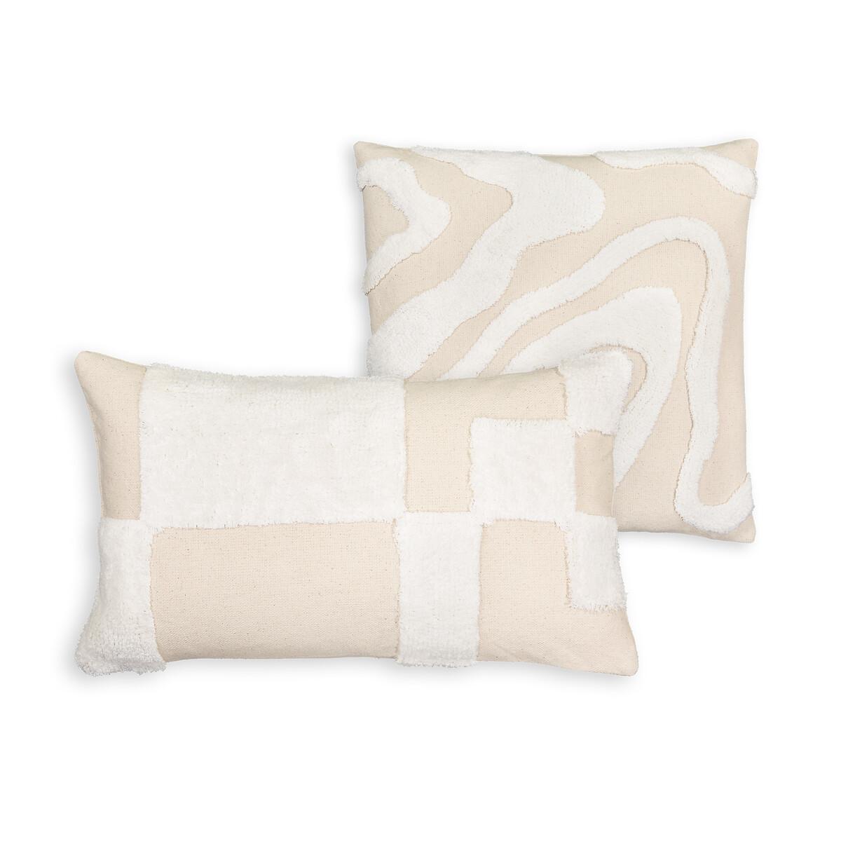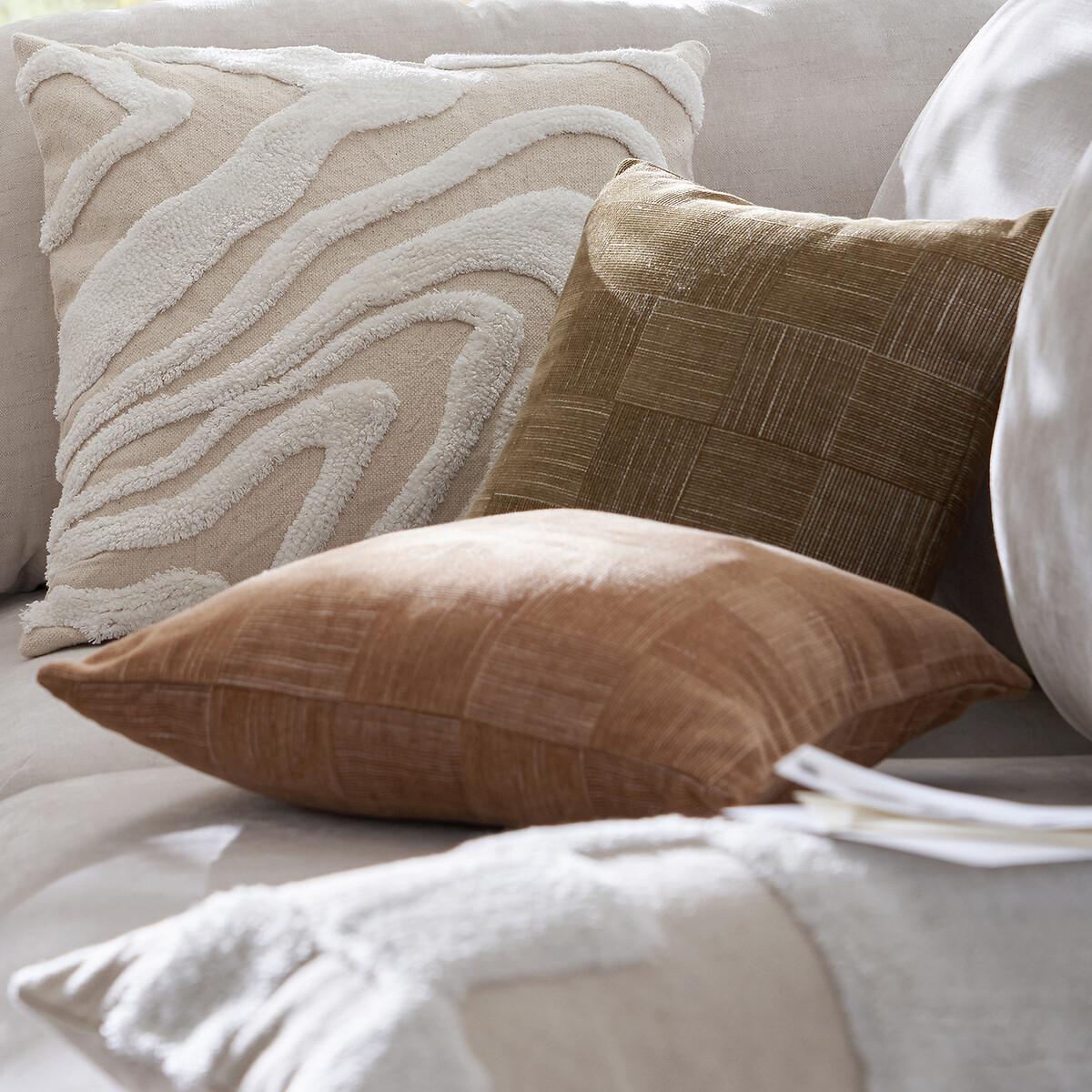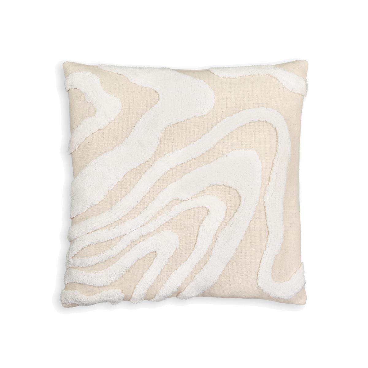 The Limestone cushion cover features a pattern evoking the movement of sand dunes in soft and warm mineral tones. Designed by La Redoute Interiors.