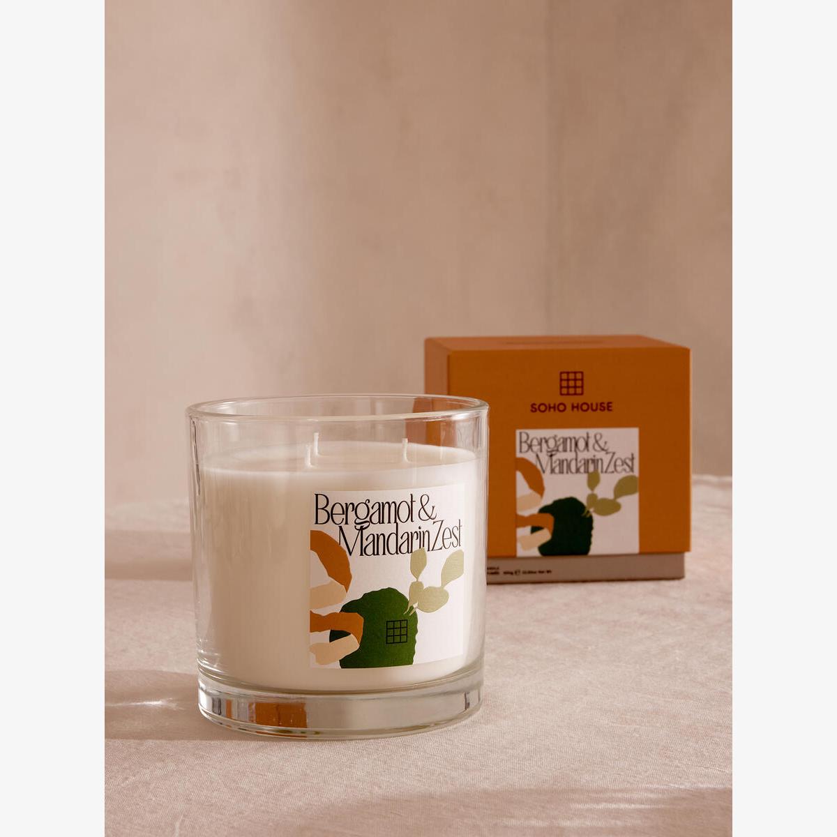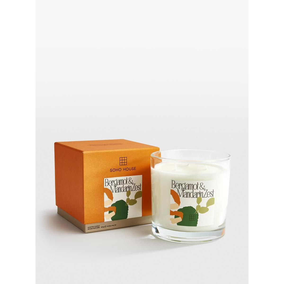 Our large, limited-edition Bergamot & Mandarin Zest Bassett candle recalls mornings overlooking the Mediterranean Sea at the terrace in Little Beach House Barcelona, with fresh citrus notes of Bergamot, Lime and Mandarin with Jasmine, Neroli, and Smoky Musk. The glass vessel features a bespoke label designed by our in-house creative team, with abstract motifs referencing visual artist, Henri Matisse. Scent notes Top: Lime Middle: Bergamot Base: Oakmoss Limited-edition large candle with Bergamot & Mandarin Zest fragrance Glass vessel Mineral wax fill Hand-poured in England Bespoke label designed in-house Abstract motifs of each scent Bespoke fragrance created by an expert perfumer for Soho House Inspired by Little Beach House Barcelona