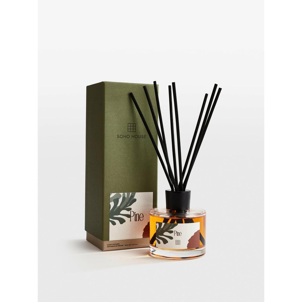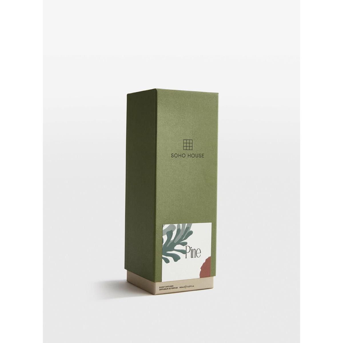 Our limited-edition Pine diffuser is inspired by Christmas time at Soho Farmhouse, with notes of aromatic Rosemary, Clove and Cedarwood. The glass vessel features a bespoke label designed in-house, with abstract motifs that depict the signature scent. Keep it on a mantlepiece or side table to release a fragrant aroma for up to 12 weeks. Scent notes Top: Rosemary Middle: Clove Base: Cedarwood Limited-edition diffuser with our Pine fragrance Glass vessel Porous black rattan reeds soak up and emit fragrance Lasts up to 12 weeks Bespoke label designed in-house Abstract motifs of each scent 150ml/ 5.27fl oz Inspired by Soho Farmhouse