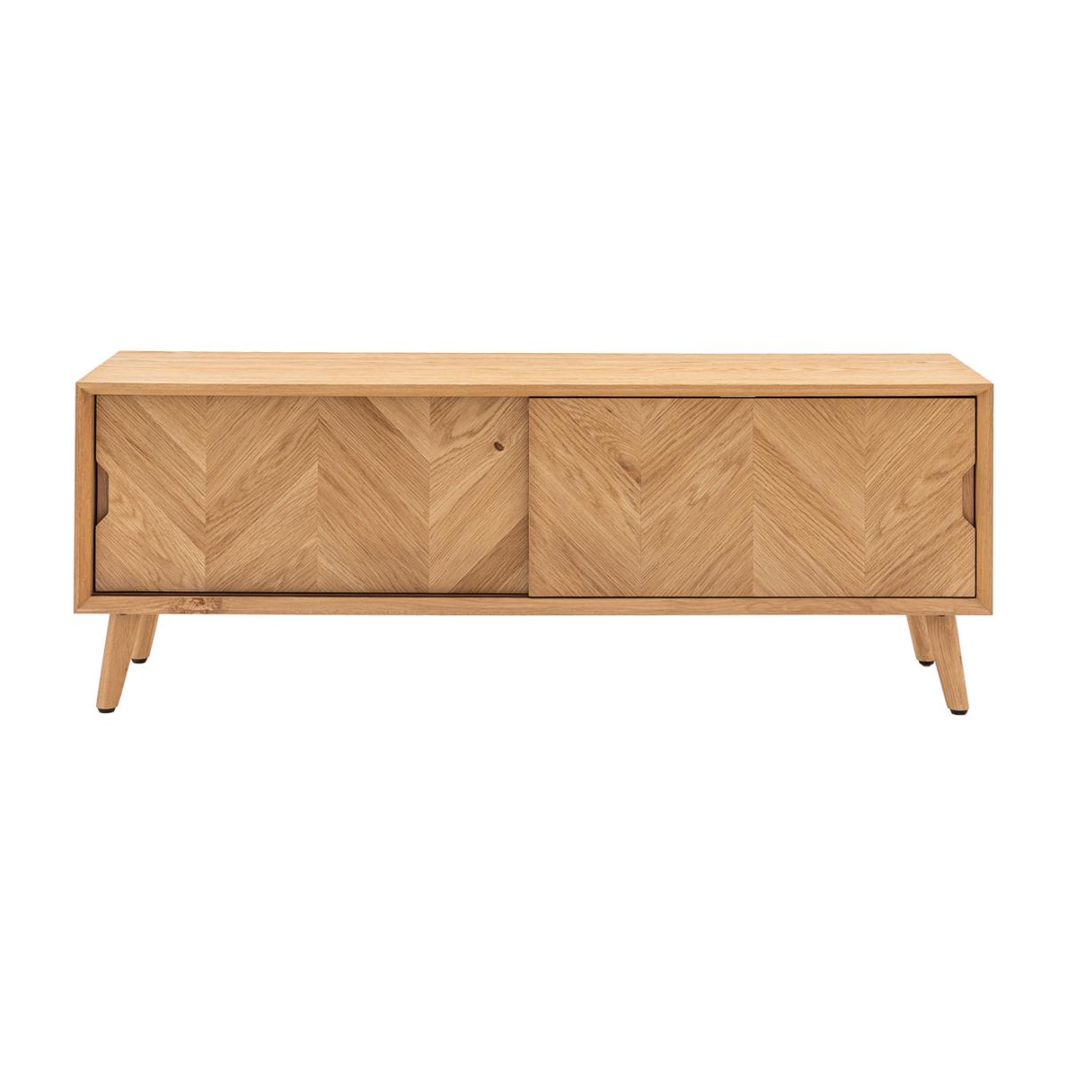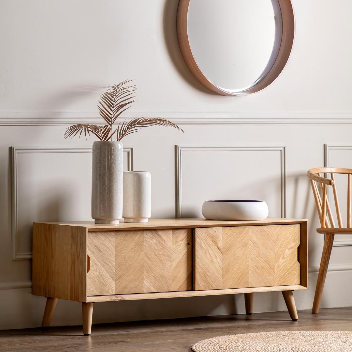 I love this media unit’s clean lines and warm natural finish, making it a versatile piece that can anchor a variety of interior styles from Scandinavian-inspired minimalism to coastal or mid-century modern spaces. It works particularly well in contemporary or understated interiors where you want to introduce some texture and warmth without overwhelming the room. Practical styling tips include using open shelving for decorative objects or exhibit your favourite books, while the closed storage keeps clutter out of sight. Its size and shape also make it ideal for spaces where you want a streamlined, uncluttered look, and it's sturdy enough to support a sizeable TV along with a few essential accessories. Keep accessories simple and organic for a cohesive feel, or inject colour with artwork and textiles to add personality.