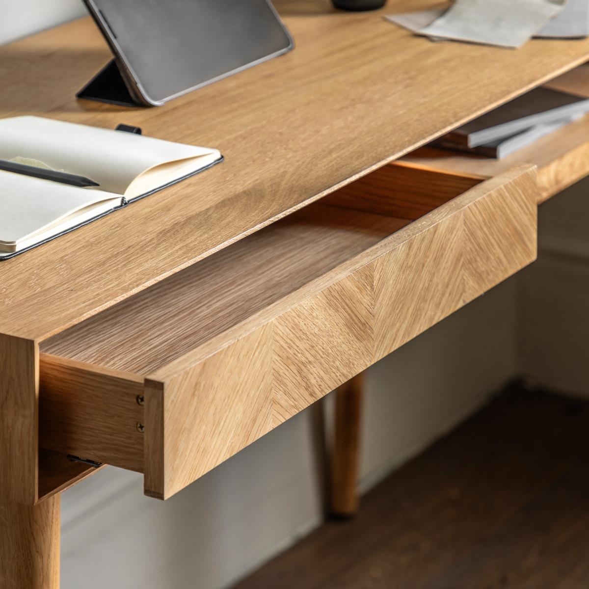 I love the Finn One Drawer Desk for its clean, minimalist design and natural wood finish, which makes it incredibly versatile for both contemporary and Scandi-inspired interiors. Its compact size and subtle detailing make it ideal in modern home offices, bedrooms, or even as a stylish console in a hallway. Practical styling tips include pairing it with a sleek desk lamp, some greenery, and organised storage solutions to keep the surface clutter-free. It works well against neutral tones or soft pastel walls, and adding textured accessories or colourful accents can help personalise it to suit your space. Overall, it’s a functional piece that effortlessly combines style and practicality.