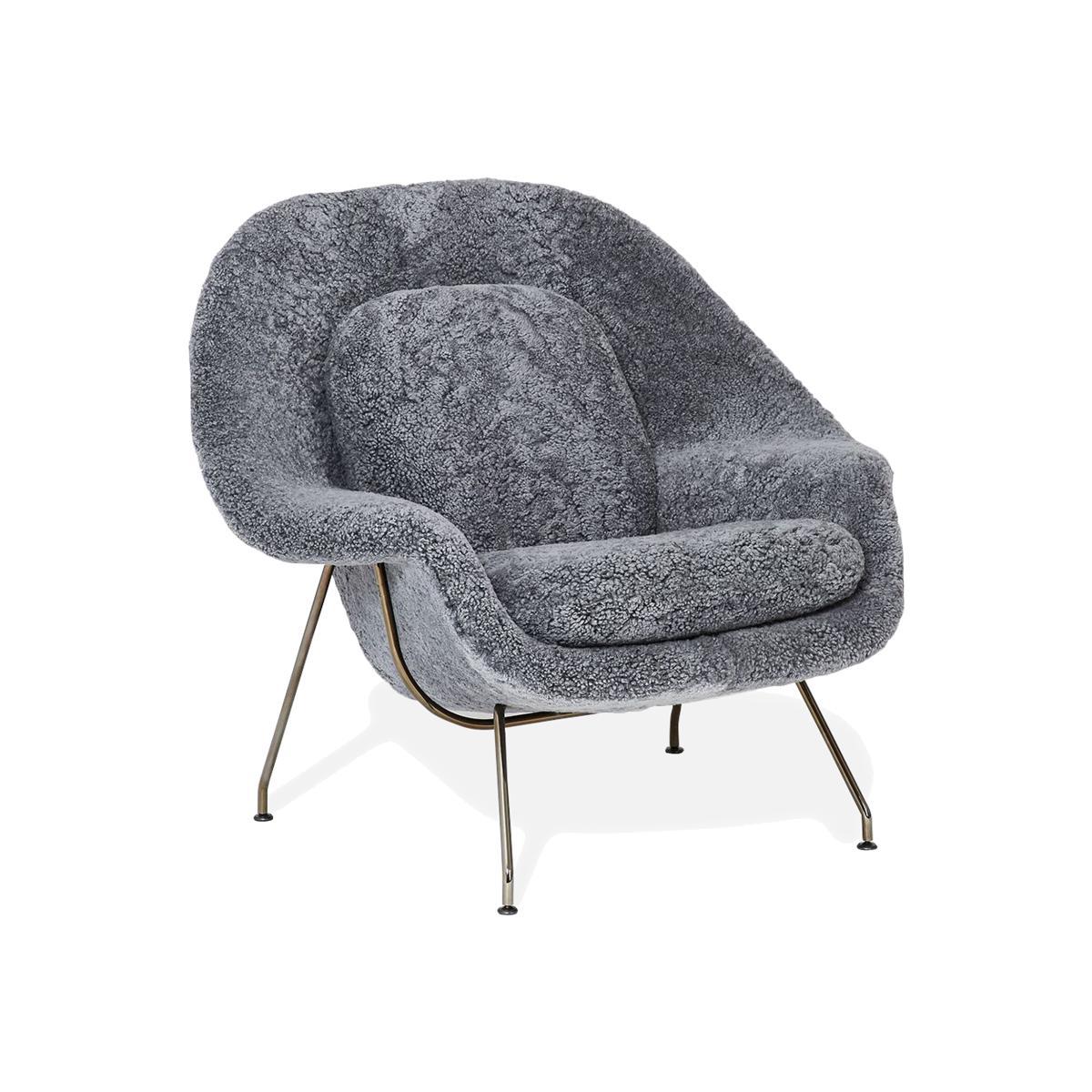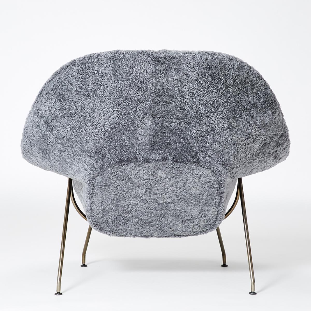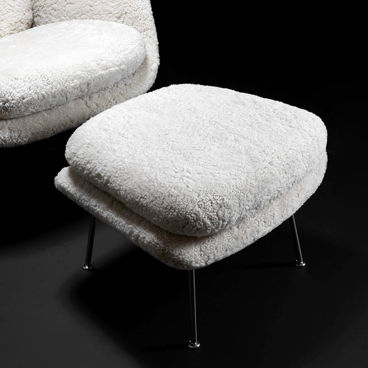 This Conran Shop-exclusive new edition of Eero Saarinen's Womb Relax Armchair in Scandinavian-grey sheepskin upholstery boasts a slick black chrome base and a padded fibreglass shell. Created in collaboration with Knoll, this icon of seating design doesn't compromise on practicality or brilliance. The comfortable, sculptural form of the Womb Armchair continues to be one of the most iconic and recognised representations of mid-century Scandinavian style, making it an ideal investment piece for both traditional and modern interior schemes. Refined for 2019 with Australian sheepskin, the unique and naturally curly wool is hard-wearing, doesn't attract dust and reduces friction for truly maintenance-free comfort. Originally designed in 1946, Florence Knoll's brief to Saarinen was to create a chair that felt 'like a basket full of pillows'. With this demand for superior comfort in mind, Saarinen designed the ergonomic, enveloping Womb Armchair and matching Ottoman.