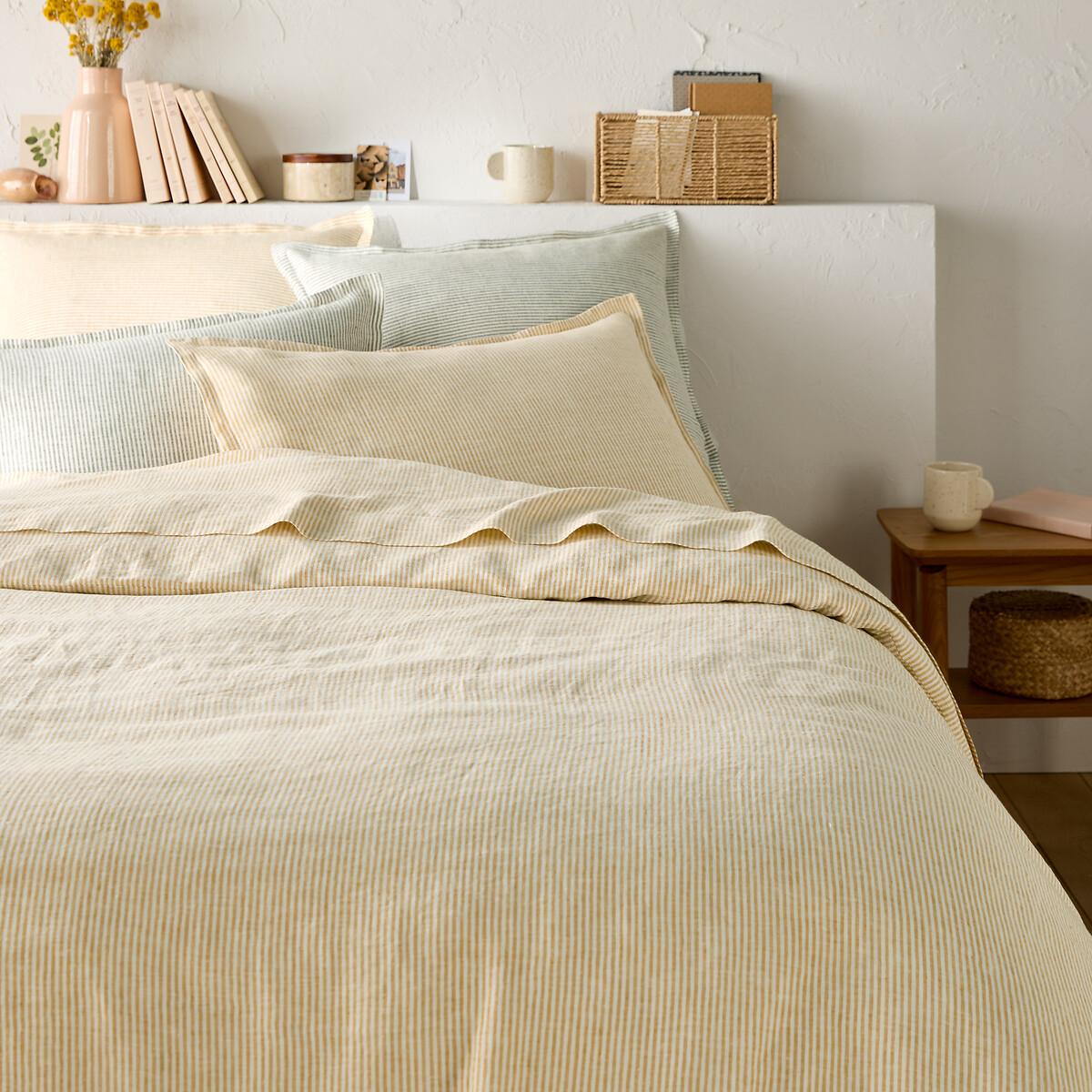 The Limona duvet cover offers a modern twist on a traditional pattern. Stripes in pure dyed woven linen... A creation by La Redoute Interiors. A fresh material in summer and comfortable in winter, washed linen becomes softer and more beautiful with every wash.. Slightly wrinkled, it does not require ironing. Product Details • 100% linen • Washed linen • Dyed woven stripes on both sides • Straight buttoned hem Match this item with the rest of the bedding in the range for a stylish bedroom. And you can mix and match it with different colours and styles from our other bedding ranges when you want to change things up and create your own unique look. Care Advice • Machine washable at 60°C • By washing your laundry at 40°C instead of 60°C, you limit energy consumption. Dimensions • 140 x 200cm • 200 x 200cm • 240 x 220cm • 260 x 240cm • MADE IN PORTUGAL. • Fibre grown in Europe. This product is labelled European Flax™. Guaranteed traceability for premium flax fibre grown in Western Europe for all its markets. A plant fibre produced using sustainable farming practices, without GMOs or irrigation (except in exceptional circumstances). • OEKO-TEX® Standard 100. Standard 100 certification by OEKO-TEX® tests textile products for harmful substances via an independent, international label.