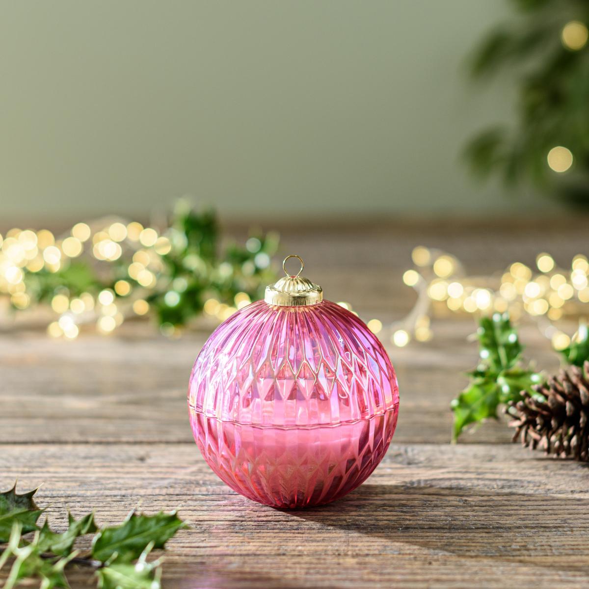 I love this pink bauble candle for its festive charm and playful colour that can add a cheerful touch to both modern and traditional interiors. It works particularly well in cosy living rooms or entryway tables, where its multi-wick design ensures a consistent, flickering glow - perfect for creating a warm ambiance during colder months. For styling tips, consider grouping it with other holiday-themed decor or placing it on a mirrored tray to enhance its reflective qualities. It’s versatile enough to brighten up a neutral palette or complement more vibrant colour schemes, making it a fun yet sophisticated addition to your seasonal decor.