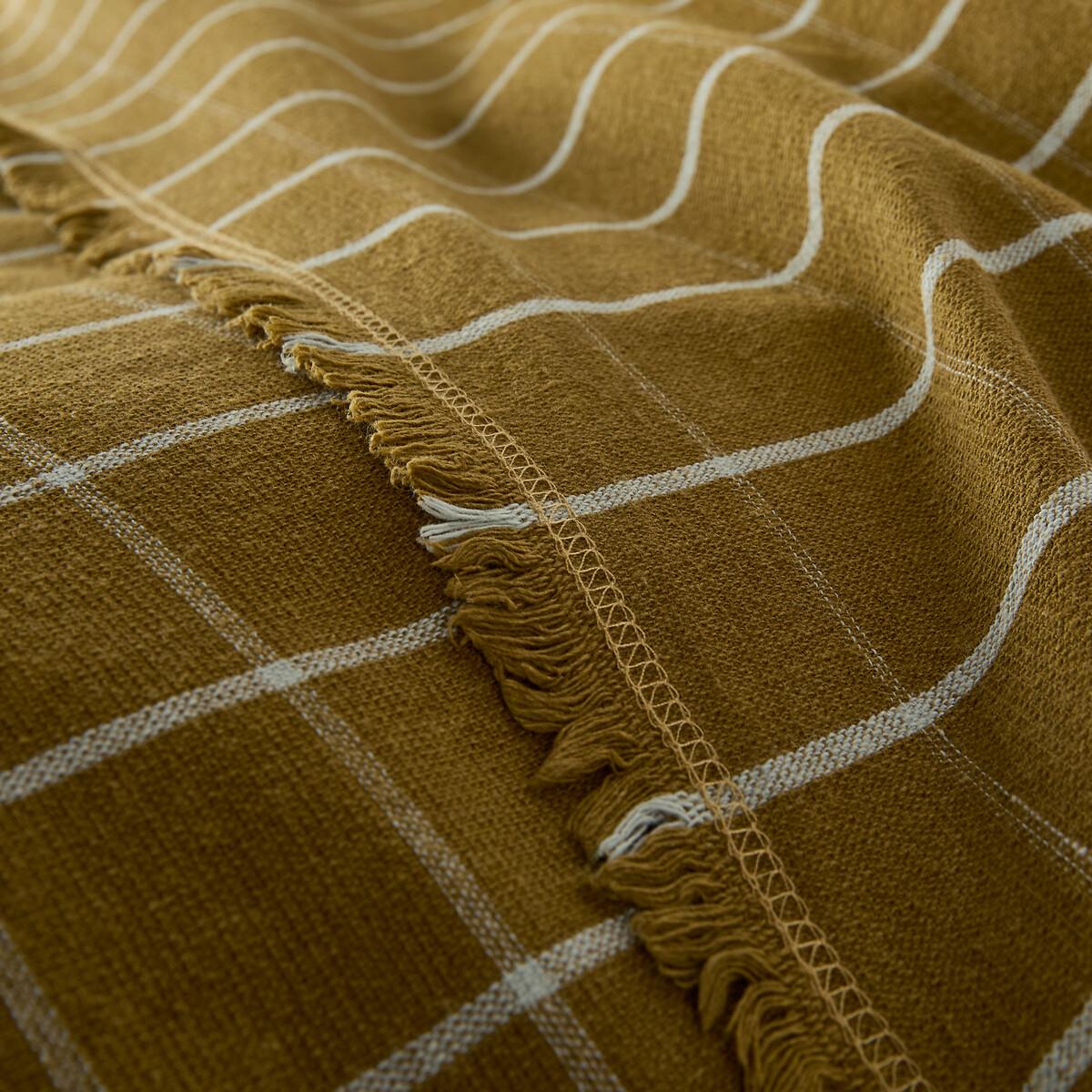 With its woven-dyed check print and fringed edges, the Lina cotton/linen bedspread will create a warm and soothing atmosphere in your Bed. Created by La Redoute Intérieurs. Cotton & linen fabric combines the softness of cotton and the raw appearance of linen. Its crumpled appearance does not require ironing. Product Details • 55% linen, 45% cotton • Fabric • Dyed woven checks • Fringed edging. Dimensions • 180 x 230cm • 230 x 250cm • OEKO-TEX® Standard 100. Standard 100 certification by OEKO-TEX® tests textile products for harmful substances via an independent, international label.