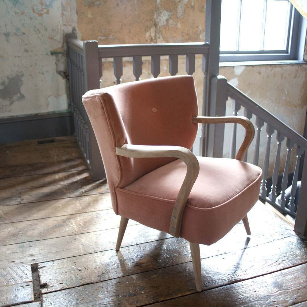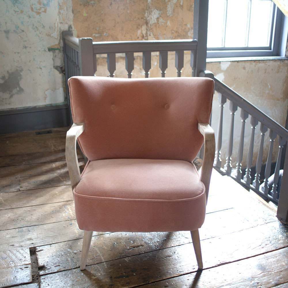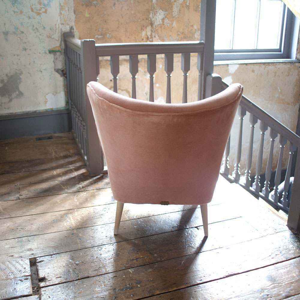 Our Lina Rose Velvet Armchair is a feminine masterpiece perfect for your bedroom or dressing room. Tapered blonde wooden legs and sculpted arms give this cocktail chair a distinctive mid-century feel, whilst the luxe rose velvet oozes modern style.