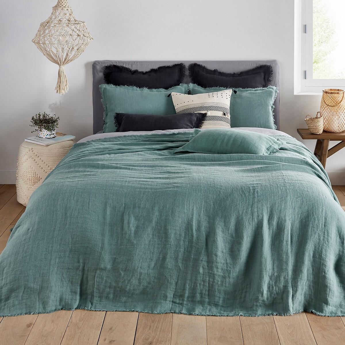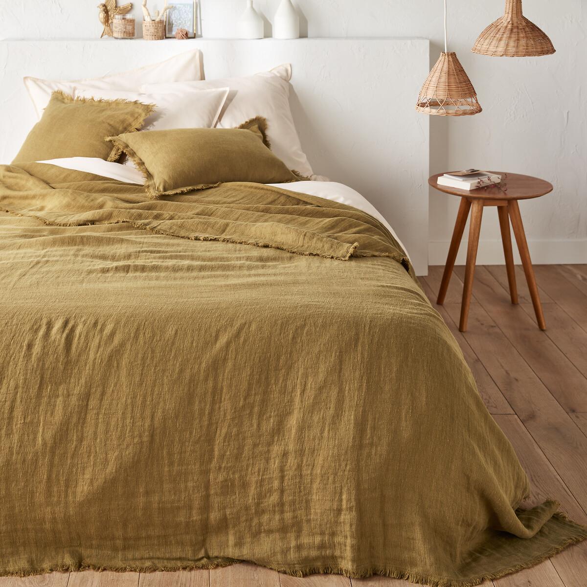 The Linage washed linen bedspread. Give character to your interior with this bedspread and its pretty range of colours. A fresh material in summer and comfortable in winter, washed linen becomes softer and more beautiful with every wash.. Slightly wrinkled, ironing is unnecessary. Product Details • 100% linen • Washed linen • Fringed trim on all 4 sides • Excellent colour fastness. Care Advice • Machine washable at 40°CSizes • 130 x 150cm • 150 x 200cm • 180 x 250cm • 230 x 250cm • OEKO-TEX® Standard 100. Standard 100 certification by OEKO-TEX® tests textile products for harmful substances via an independent, international label.