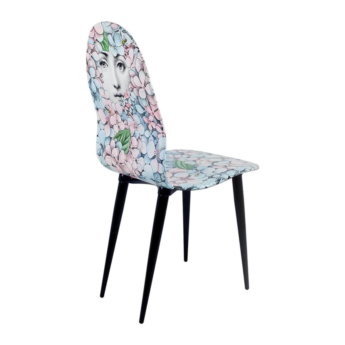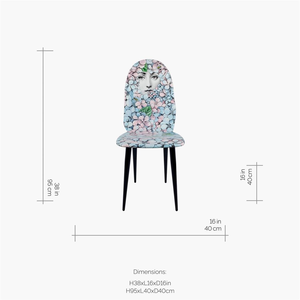 Bring iconic design to the dining room with this Linangea chair from Fornasetti. Handcrafted from lacquered wood, it depicts the face of Lina Cavalieri hiding amongst pastel coloured blooms, the same flowers which surrounded Casa Fornasetti for 60 years. A reinvention by Barnaba Fornasetti, this striking chair is a welcome addition to any home.