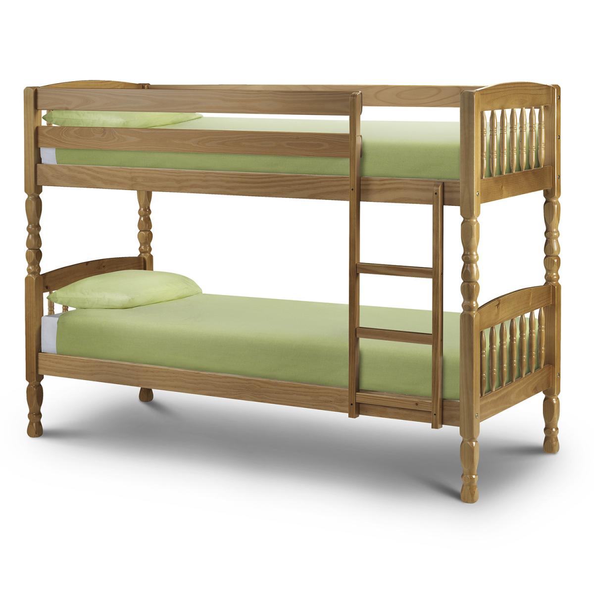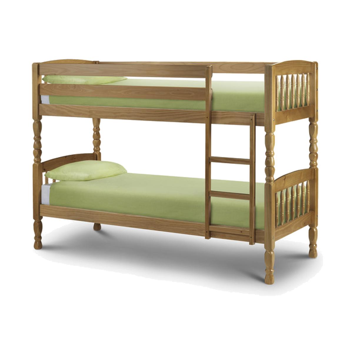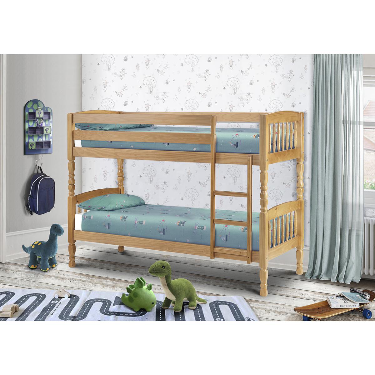 This traditional bunk bed has beautifully turned spindles and is finished antique lacquer. Constructed from solid pine, ensuring long-lasting durability. Due to Bunk Bed Safety Regulations, only the Premier Mattress is suitable for use on the upper bunk.