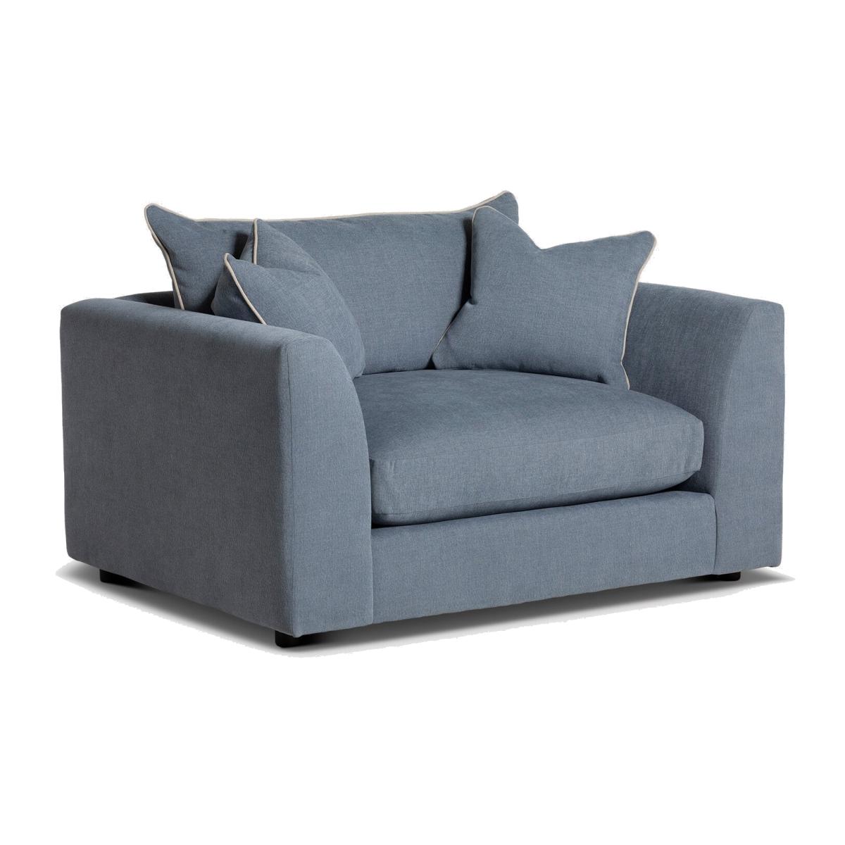 I’m a big fan of this blue cuddler because its wide seat and deep cushions make it as practical as it is comfortable. The soft yet hard-wearing fabric works brilliantly in a modern or Scandi-inspired living room, especially when you balance the richer blue tone with pale woods and simple metal accents. For styling, add a couple of textured cushions in warm neutrals and a lightweight throw to break up the block colour, and position it near a low coffee table or beside a floor lamp to create a dedicated reading or lounging corner.