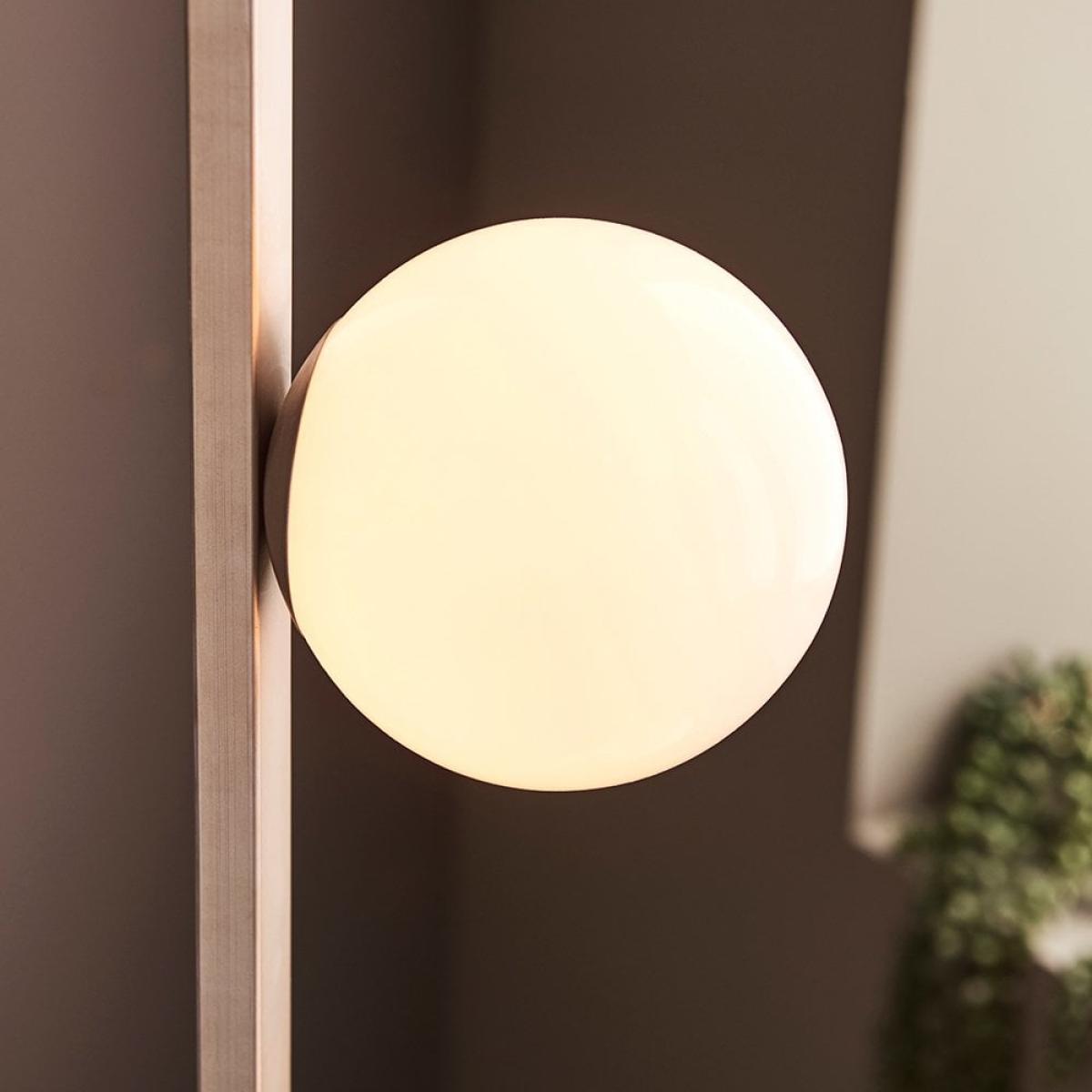 Cast a soft ambient glow with Lincoln. This striking floor lamp features opal glass globes in a gloss finish that helps to diffuse light for maximum impact. While the oblong frame with its brushed silver finish will hold your gaze across any living room or hallway.