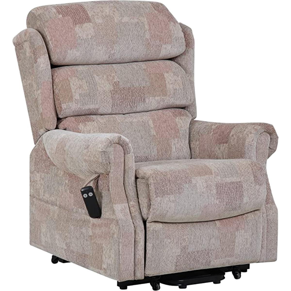A luxurious dual motor riser recliner offering a high degree of comfort and mobility with outstanding lumbar support. Upholstered in a classic high quality fabric and fitted with an easy to use rise and recline mechanism, the Lincoln is offered in petite or standard size for ultimate comfort. Material: Fabric. Colour: Autumn Mosiac. Weight Limit KG: 125.