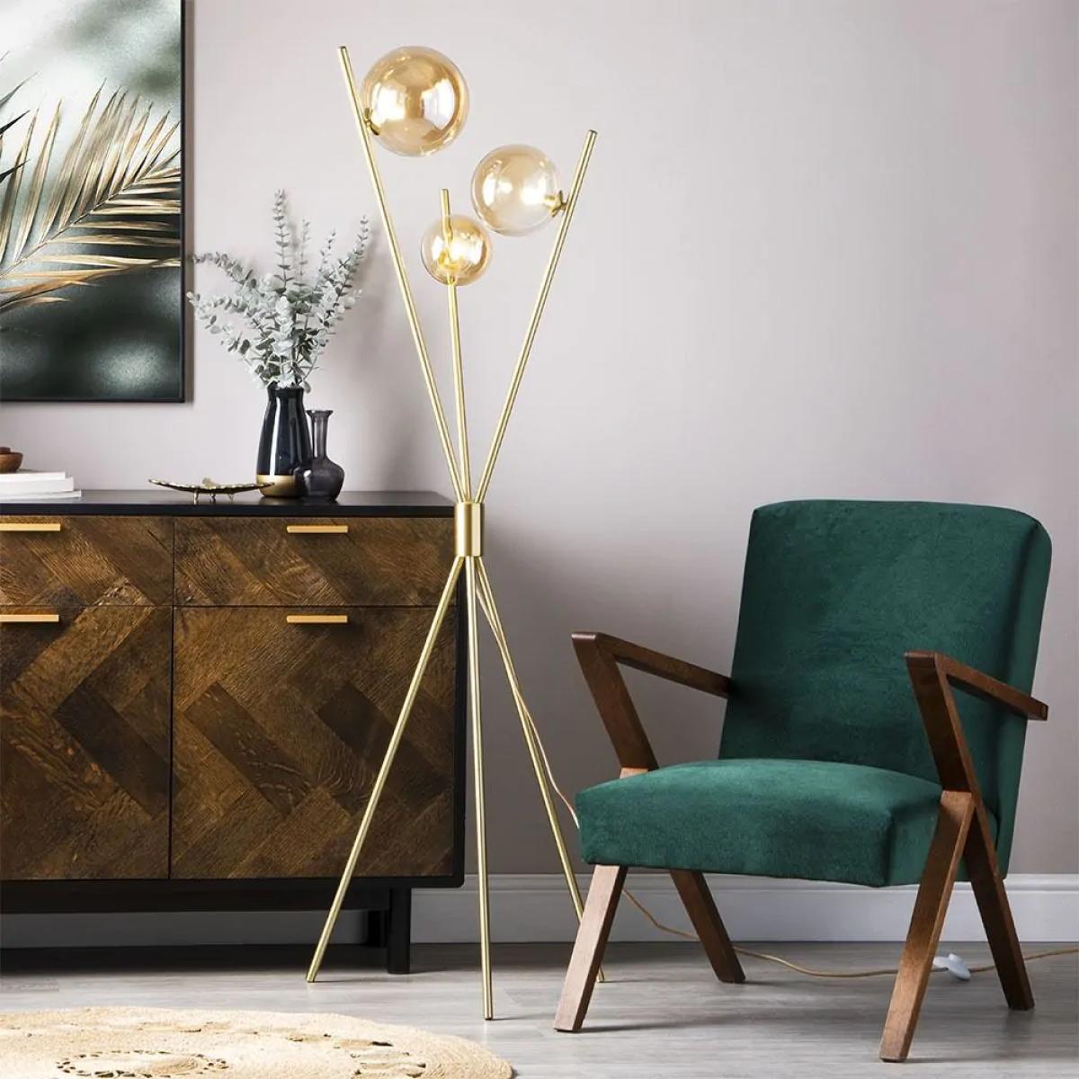 Bring dramatic lighting to your interior decor with the stunning Lincoln Tripod Floor Lamp. Three of our signature Lincoln tinted glass shades diffuse a soft, relaxed light into your space - making this floor lamp ideal for any living room cosy corner. The statement satin brass finish adds an eclectic aesthetic that stands out among any room.