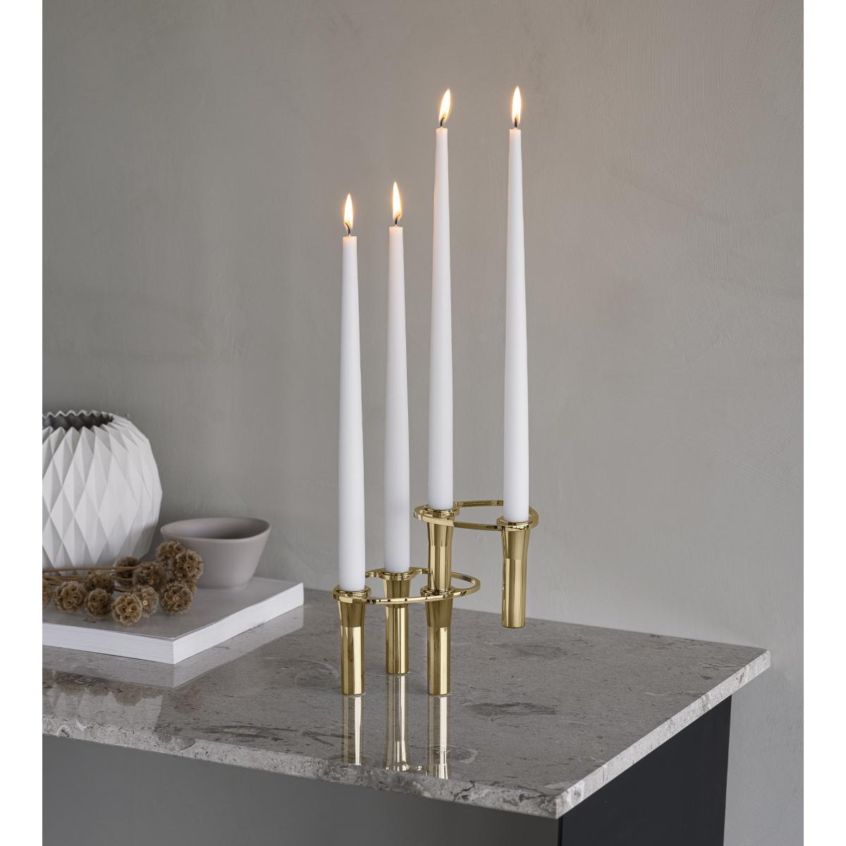 Lind Curve combinable candlestick in 24 K gold plated from Danish brand LIND DNA is a special handmade detail for your interior. You can assemble parts in different sizes to create a completely unique and personal candlestick. The gold plated combinable parts come in three different sizes in matt lacquered steel - Single, Double and Triple. The triple part can stand completely alone and form the base of your Lind Curve candlestick. The single and double parts must be combined with other parts to form the candlestick. Develop your creativity and choose for yourself how you want each candle stick to look. Stack and then combine them in an infinite number of different ways, both vertically and horizontally. The combinable candlestick Lind Curve is made in Denmark and look beautiful on a sideboard or even as a center piece on the dining table.