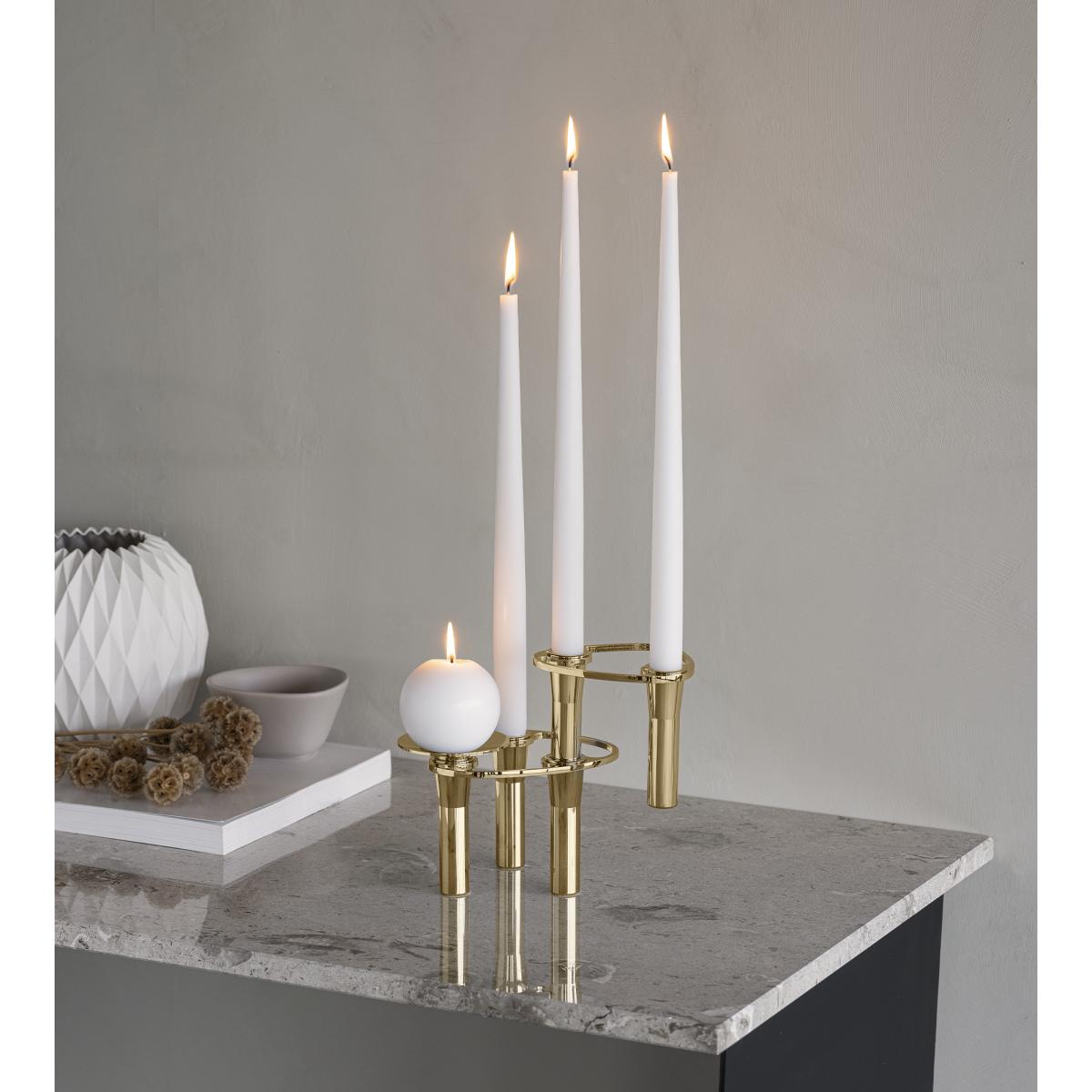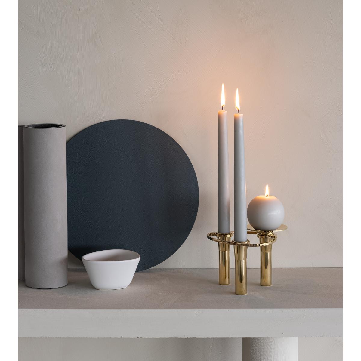 I love the LIND DNA Curve candlestick for its sleek, contemporary design coupled with practicality. Its minimalist form works beautifully in modern or Scandinavian interiors, where clean lines and understated elegance are key. The gold tray adds a touch of warmth and luxury, making it versatile enough to style on coffee tables, sideboards, or even on bathroom counters for a sophisticated touch. Practical styling tips include balancing it with other metallic accents or neutral-toned accessories to let its shape and finish stand out. It’s especially effective when paired with pillar candles, creating a cosy and inviting atmosphere without overwhelming the space.