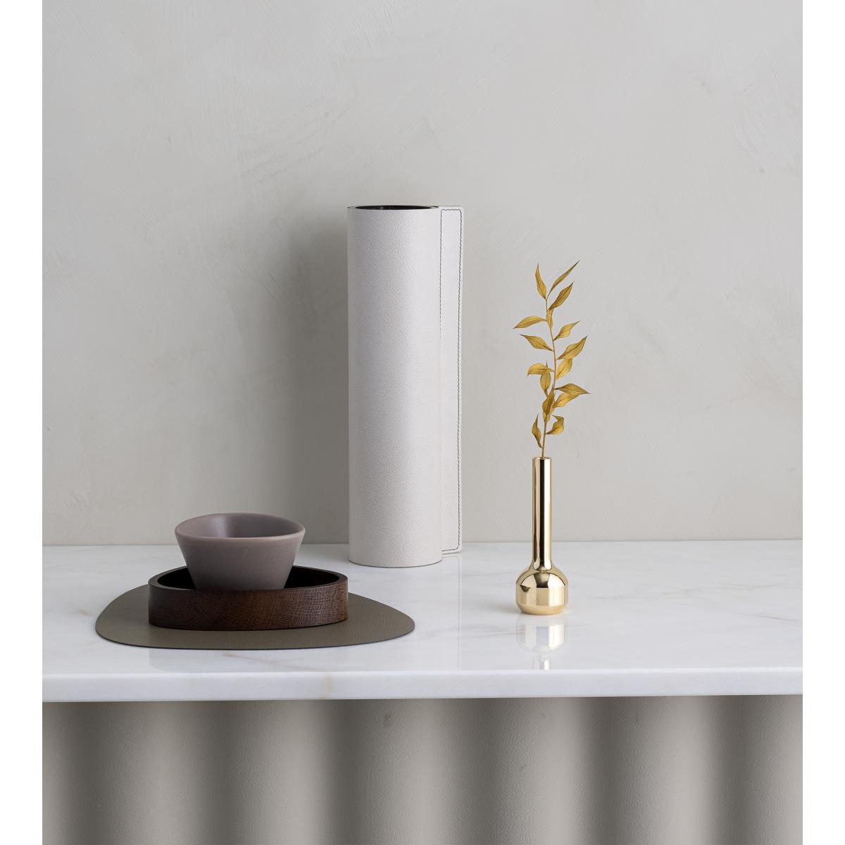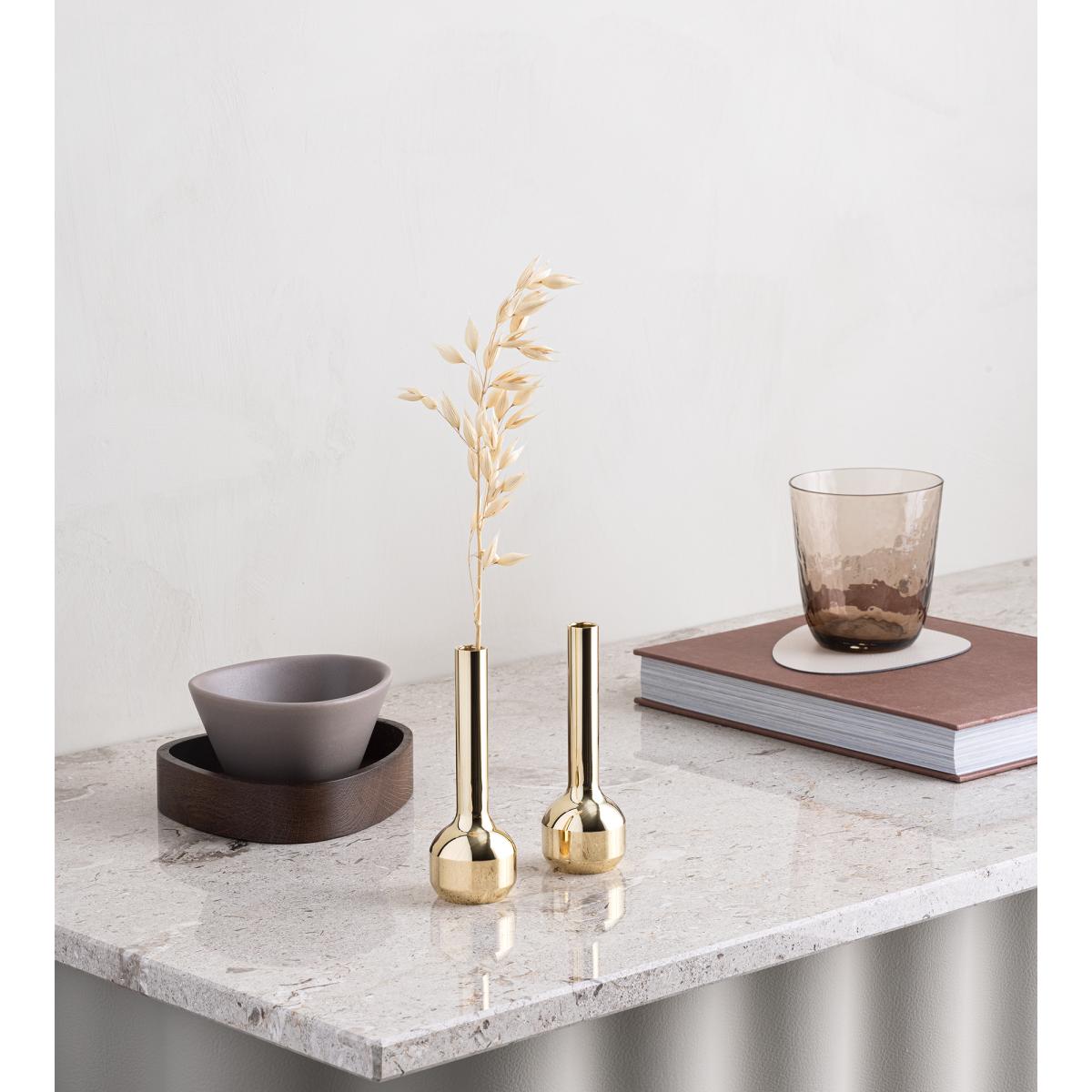I love this gold-plated vase for its sleek, minimalist silhouette-it’s a statement piece that brings a touch of luxe to modern or contemporary interiors. It works particularly well in spaces with neutral palettes or monochrome schemes, where its reflective finish can really stand out. Practical styling tips include pairing it with slim, botanical stems or single flowers for an elegant look, and placing it on a sideboard, console, or open shelf to maximise its sculptural appeal. Its refined shape also makes it versatile enough to fit comfortably in both understated settings and more glamorous schemes.